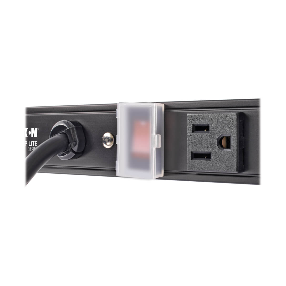 Your components plug into eight NEMA 5-15R outlets designed to accommodate most AC adapters and transformers. Outlets are spaced 2.48 inches apart from center to center. Resettable 15A circuit breaker protects all outlets against dangerous overloads. Lighted on/off switch provides one-touch control over connected equipment. Switch’s clear plastic cover prevents accidental shutdown.