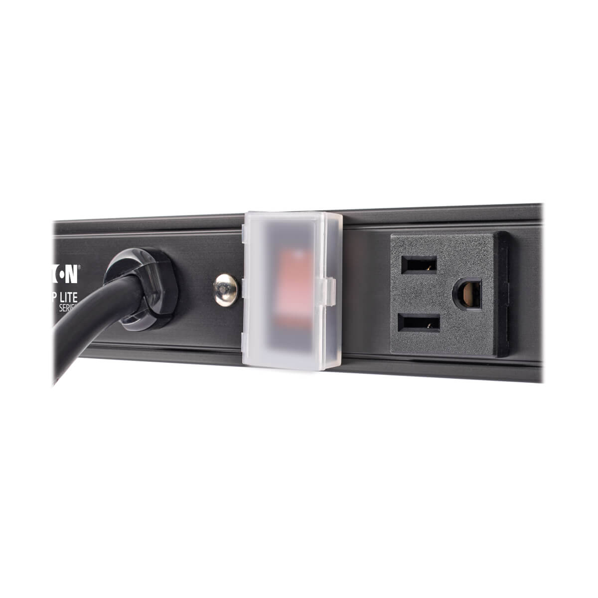 Your components plug into 12 NEMA 5-15R outlets designed to accommodate most AC adapters and transformers. Outlets are spaced 2.638 inches apart from center to center. Resettable 15A circuit breaker protects all outlets against dangerous overloads. Lighted on/off switch provides one-touch control over connected equipment. Switch’s clear plastic cover prevents accidental shutdown.