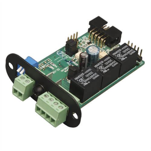 The RELAYIOMINI allows users to communicate UPS status and events via three contact closure outputs. Installs in the back panel of compatible power modules on select SmartOnline® UPS systems only. Requires removal of USB module to install.