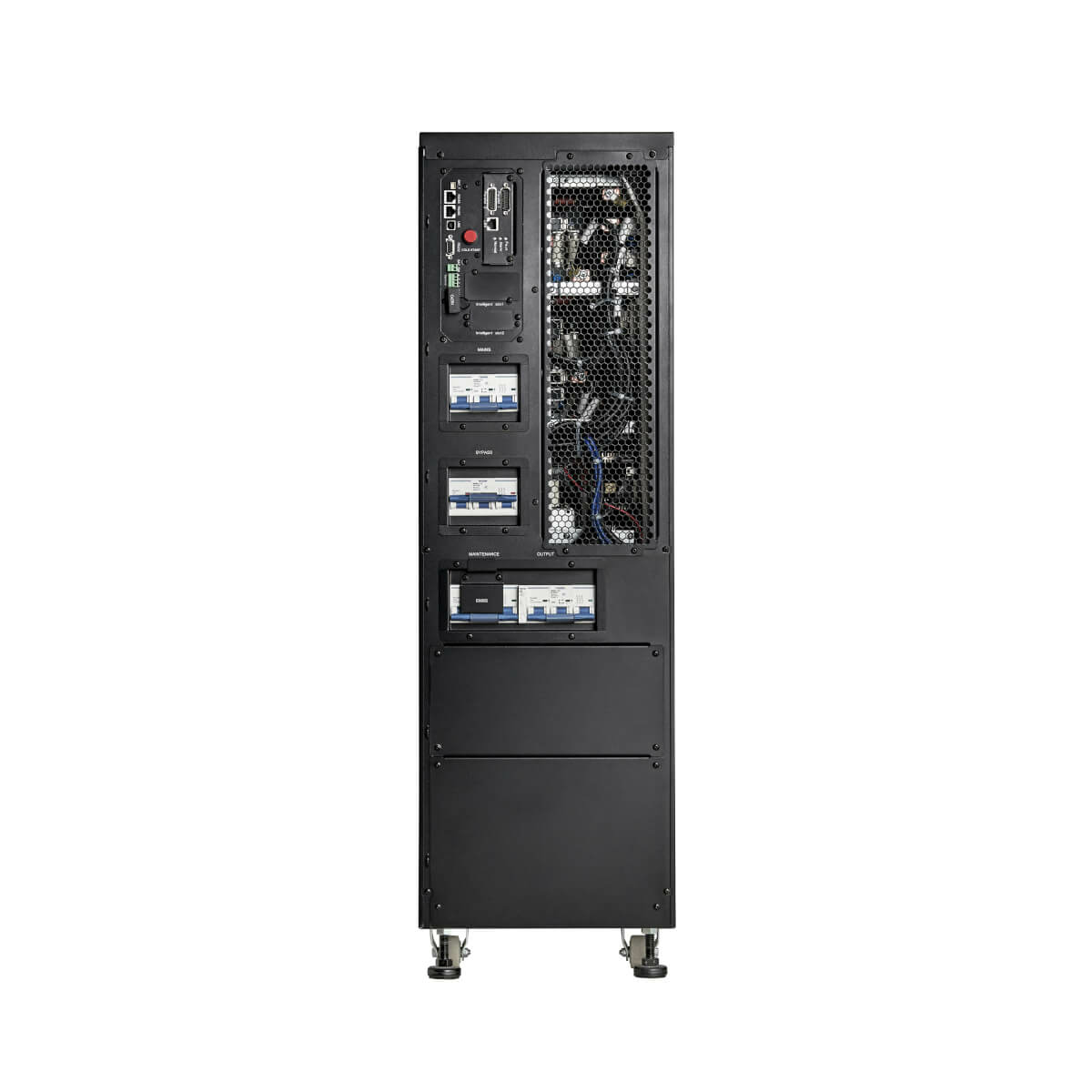 ENERGY STAR 2.0-certified technology provides high operational efficiency to save on utility and cooling costs, as well as protect the environment. This UPS achieves up to 94% efficiency in double-conversion mode and up to 98% in ECO mode, reducing your power and cooling costs. Unity output power factor (1.0) lets you support more equipment. A low THDi (<3%) improves generator compatibility. A low THDv (≤2%) and active power factor correction with DSP control improve output performance. The hardware and firmware platform design reduces the number of unique boards, improving mean time to repair (MTTR) and resulting in reduced downtime. Automatic and maintenance bypass transfer UPS load to utility power during faults, overloads and maintenance, which also avoids costly system downtime.