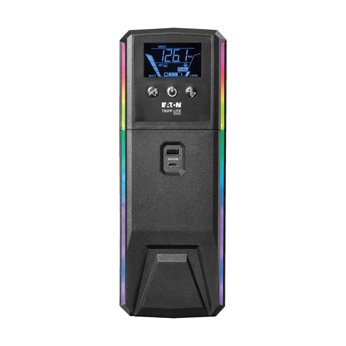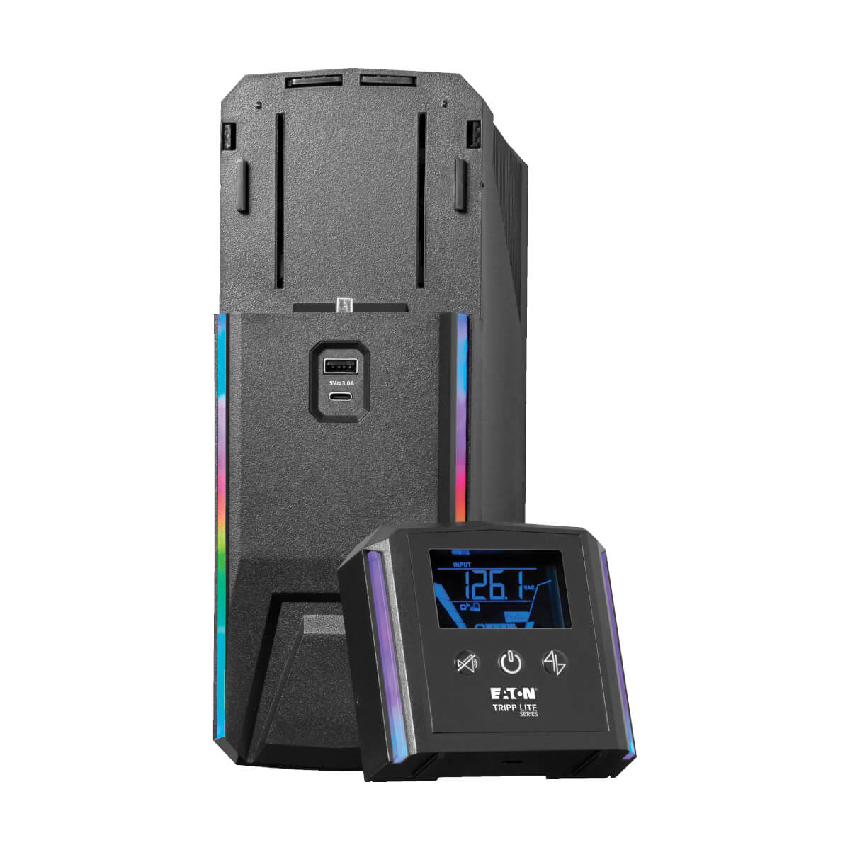The SMART1000PSGLCD is purpose-built for gaming, including RGB color LEDs you can program yourself. Controllable via the detachable front-panel LCD or Tripp Lite’s free downloadable software utility (https://www.tripplite.com/products/management-utilities), two separate LED banks come with seven preset lighting modes and 16.7 million possible color combinations. You can program a variety of color and motion effects or configure the lights to respond to power consumption changes on the master outlet.