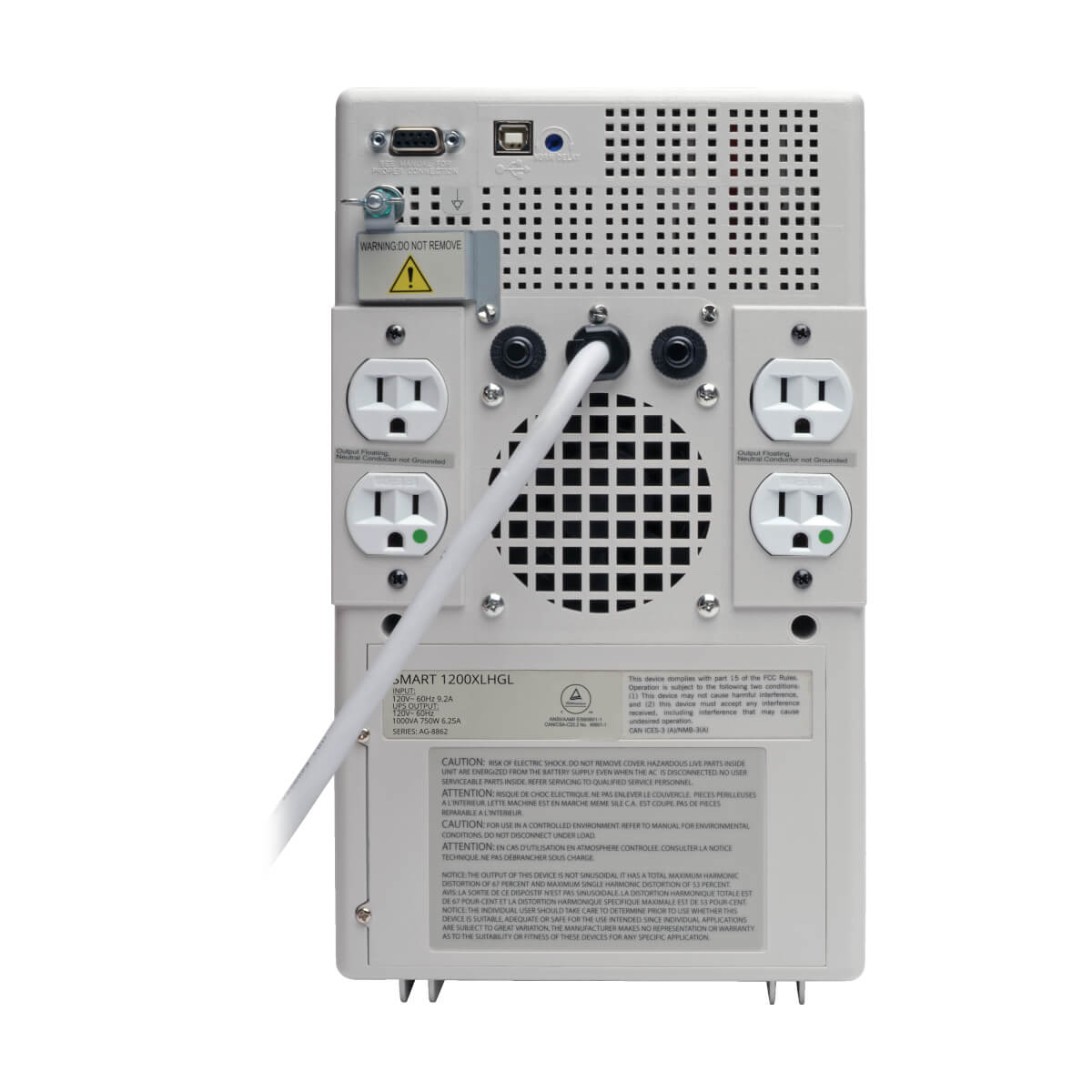 The SMART1200XLHGL also features diagnostic LEDs, as well as a USB port and a DB9 serial port that work with Tripp Lite’s free downloadable PowerAlert® software for safe, unattended system shutdown and file saves in the event of a prolonged power failure.