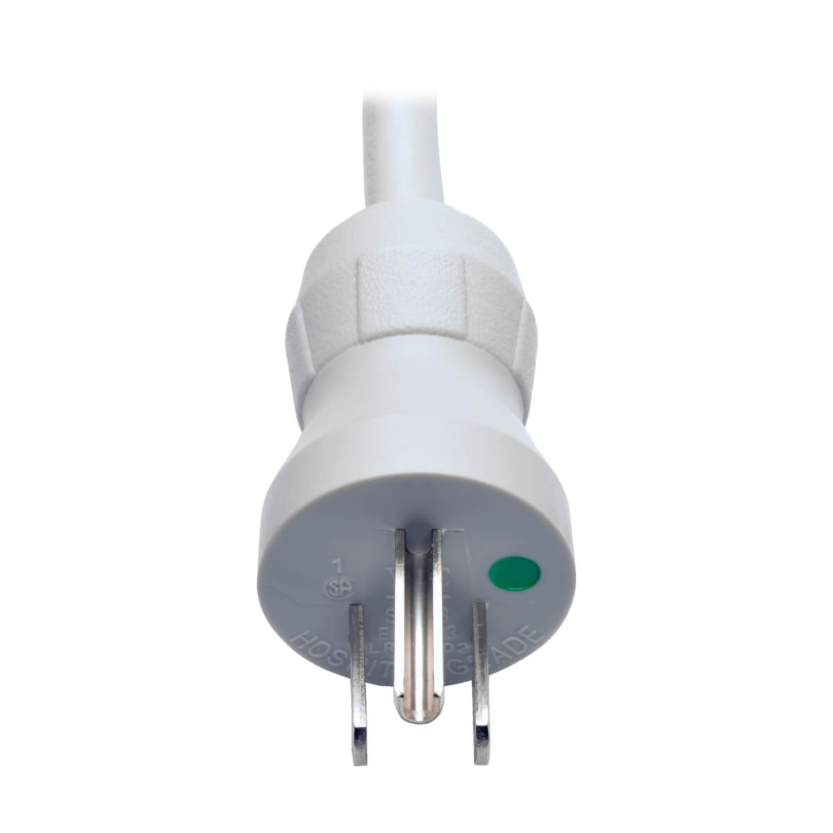 This UPS system features four NEMA 5-15R-HG hospital-grade outlets and has a hospital-grade NEMA 5-15P-HG plug with a 6-foot cord for flexibility in placement. All four outlets provide both backup protection and 650 joules of surge protection.