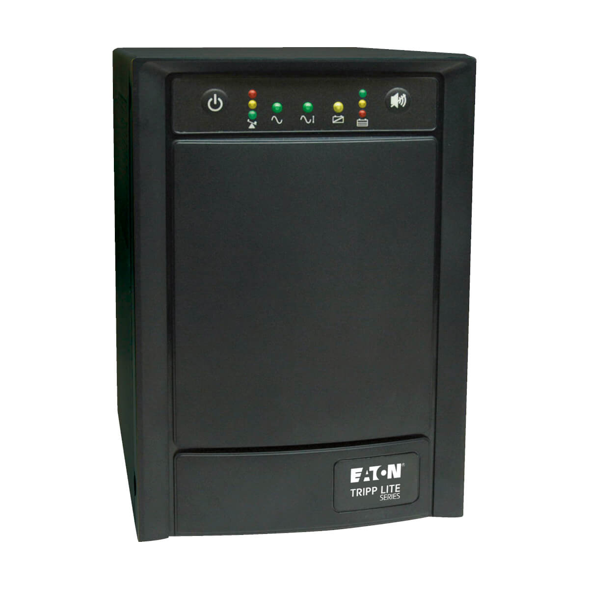 1500VA line-interactive tower UPS system for server, networking and telecommunications equipment. Upright tower form factor. Offers sine wave 100V, 110V or 120V nominal output in both AC and battery modes. Switches to battery-derived AC output during power failures and extreme voltage variations. Line-interactive automatic voltage regulation (AVR) provides voltage boost/cut during brownouts/overvoltages to maintain regulated 100V, 110V or 120V nominal output over an input voltage range of 95-145V. Includes NEMA 5-15P input plug and 8 UPS-supported NEMA 5-15R output receptacles. Network-grade AC surge and noise suppression. Network management interfaces support simultaneous communications via USB port, DB9 serial port and SNMPWEBCARD slot. HID-compliant USB interface enables integration with built-in power management and auto shutdown features of Windows and Mac OS X. Supports simultaneous detailed monitoring of equipment load levels, self-test data and utility power conditions via all 3 network interfaces. Includes PowerAlert monitoring software and complete cabling. Three-stage metered current monitoring and battery charge status LEDs. Data line surge suppression for dialup, DSL or network Ethernet connections. Utility power and voltage regulation LEDs. Audible alarm. Self-test. Field-replaceable, hot-swappable internal batteries. Attractive all-black color scheme.