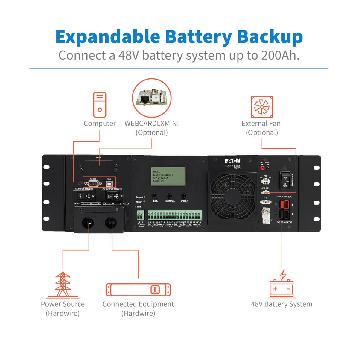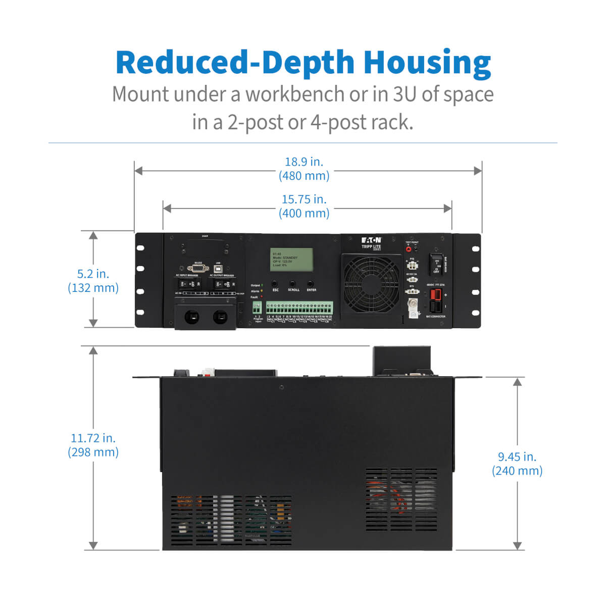 120VAC 48VDC 1500VA 1200W Extreme Temperature Network UPS for Industrial and Traffic Networks, 3U, Hardwire