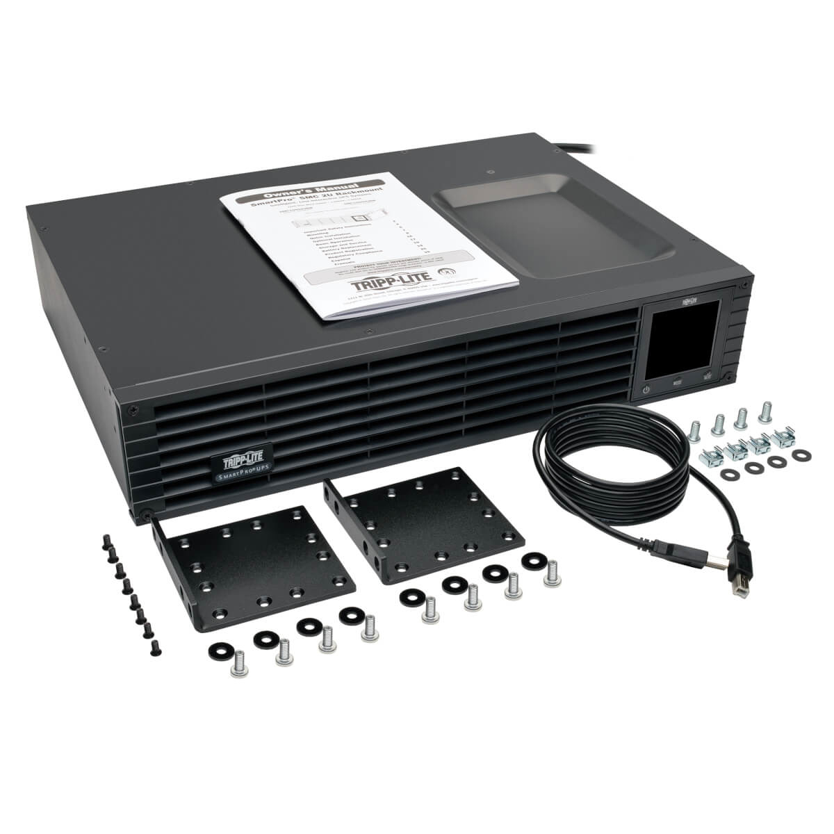 Tripp Lite SmartPro Line Interactive UPS with enhanced LCD interface offers network-grade power protection for critical server, network and telecommunications equipment. Line Interactive Uninterruptible Power Supply (UPS) with built-in Auto-Voltage Regulation (AVR) actively corrects brownouts and overvoltages back to usable levels while maintaining a full battery charge in case of power failure. Interactive LCD interface reports UPS operating mode, detailed UPS and site-power data, plus enables a variety of UPS setup and configuration options. Super-fast switchover from line to battery power occurs within milliseconds to maintain operation of connected equipment without interruption or reboot. 95% line-mode efficiency offers reduced heat emissions and operating costs. USB and RS-232 ports work with PowerAlert software to communicate detailed UPS status and site power conditions. HID-compliant USB port enables integration with built-in power management and auto shutdown features of Windows and Mac OS X. Communications ports enable detailed monitoring of equipment load levels, self-test data and utility power conditions. PowerAlert UPS monitoring and control software is available for free download. Emergency Power Off (EPO) interface. LCD display panel easily rotates for viewing in rackmount or tower configurations. Audible alarm with push-button momentary alarm-cancel and silent-mode configuration options. Programmable self-test. Field-replaceable, hot-swappable internal batteries.