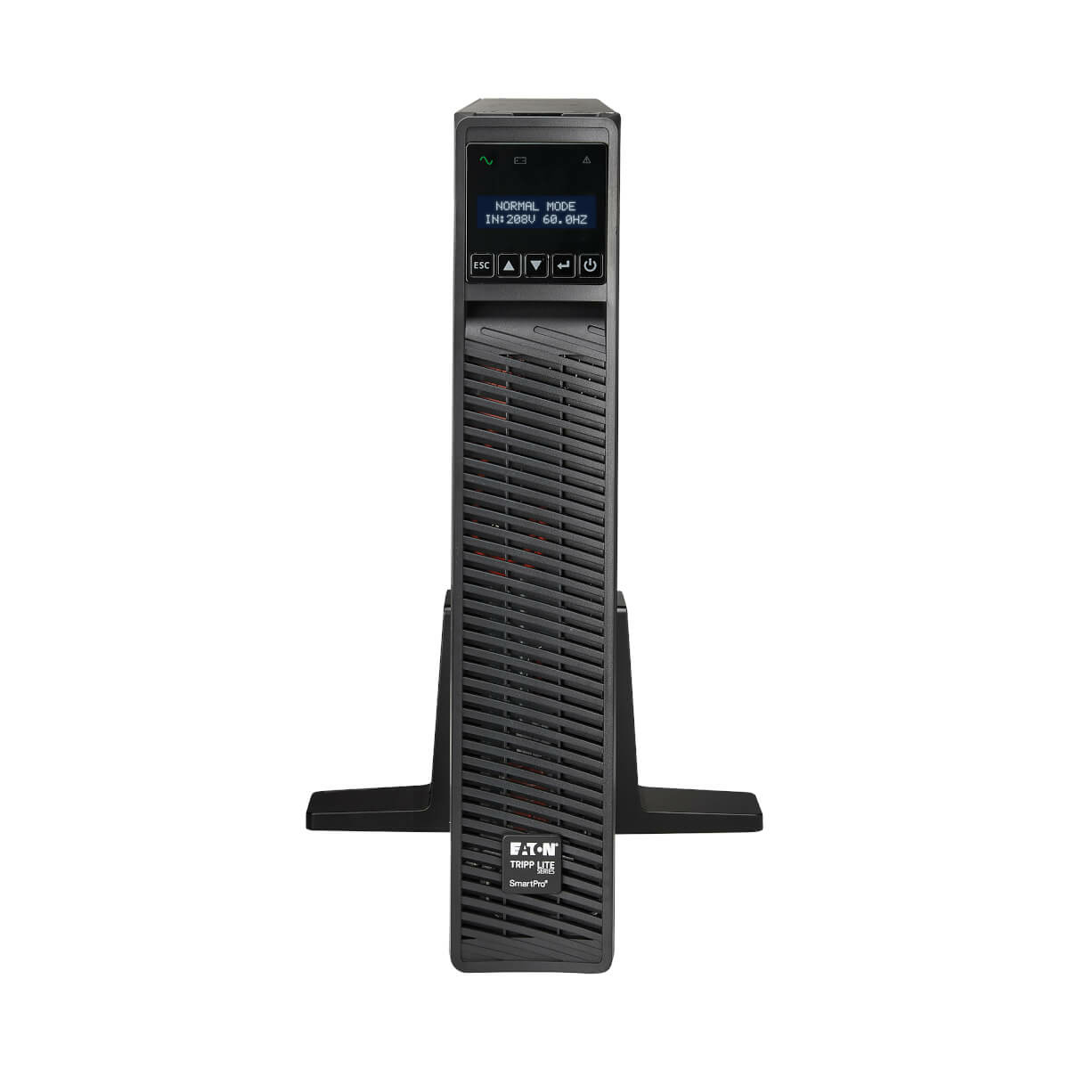 You can mount the SMX3000XLRT2UA in just 2U of space in an EIA-standard 19-inch rack using the included hardware. You can also adapt it for tower installation using the included support stands. The detachable six-foot (1.8-meter) power cord with NEMA L6-20P plug connects to a compatible AC outlet.
