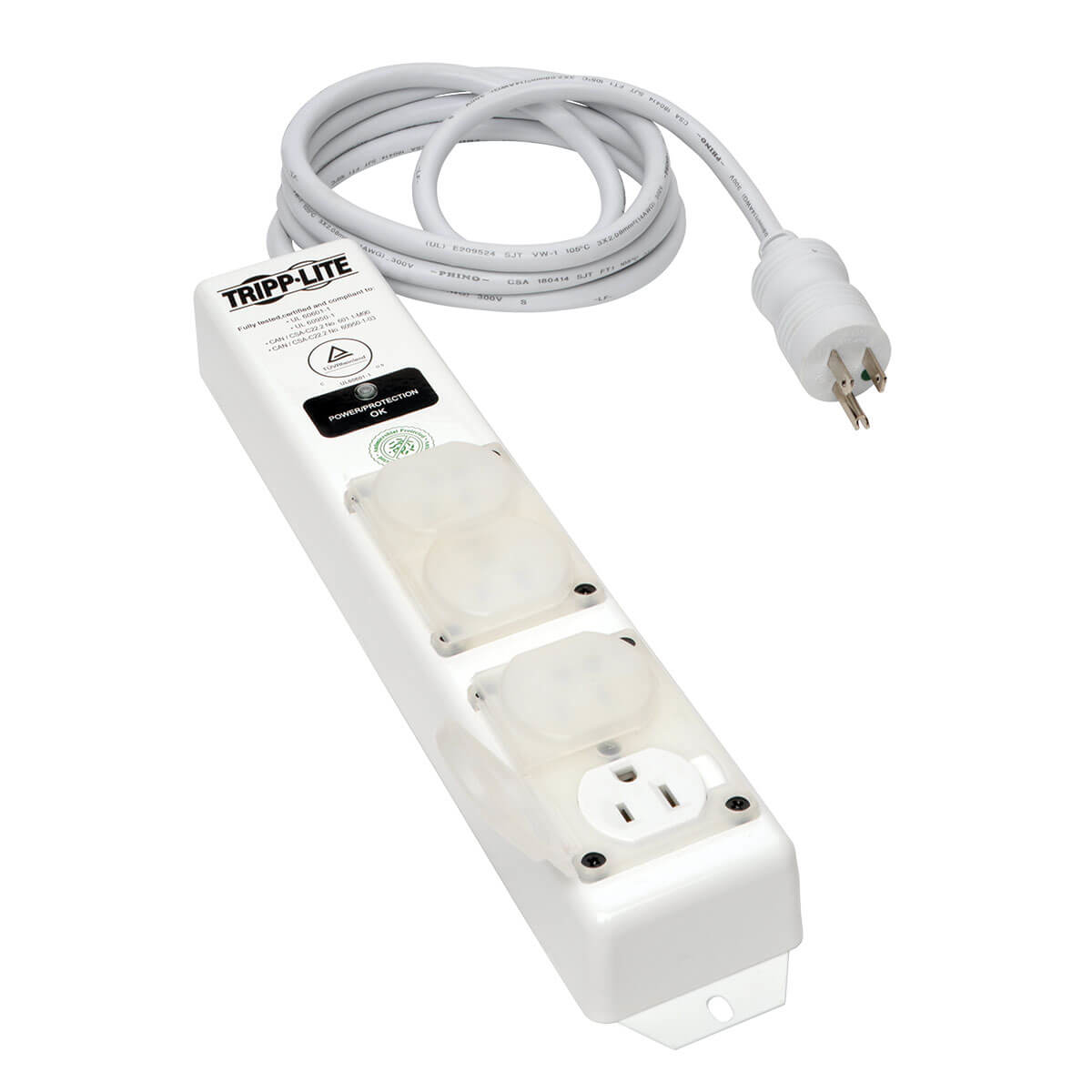 The SPS415HGULTRA is the first Medical-Grade Outlet Strip with Surge Suppression and full UL 60601-1/60950-1 compliance. Tested to U.S. and Canadian safety standards, it is the first of its kind to be agency approved for use in patient-care areas, including physicians' offices, imaging centers, laboratories and more. The SPS415HGULTRA is ideal for protecting electrical equipment from damaging surges and spikes within patient vicinity. Features include switchless design to prevent accidental shutoff, four NEMA 5-15R-HG hospital-grade outlets with safety covers, 1410 joules of surge suppression, NEMA 5-15P-HG hospital-grade plug and 15A resettable circuit breaker.