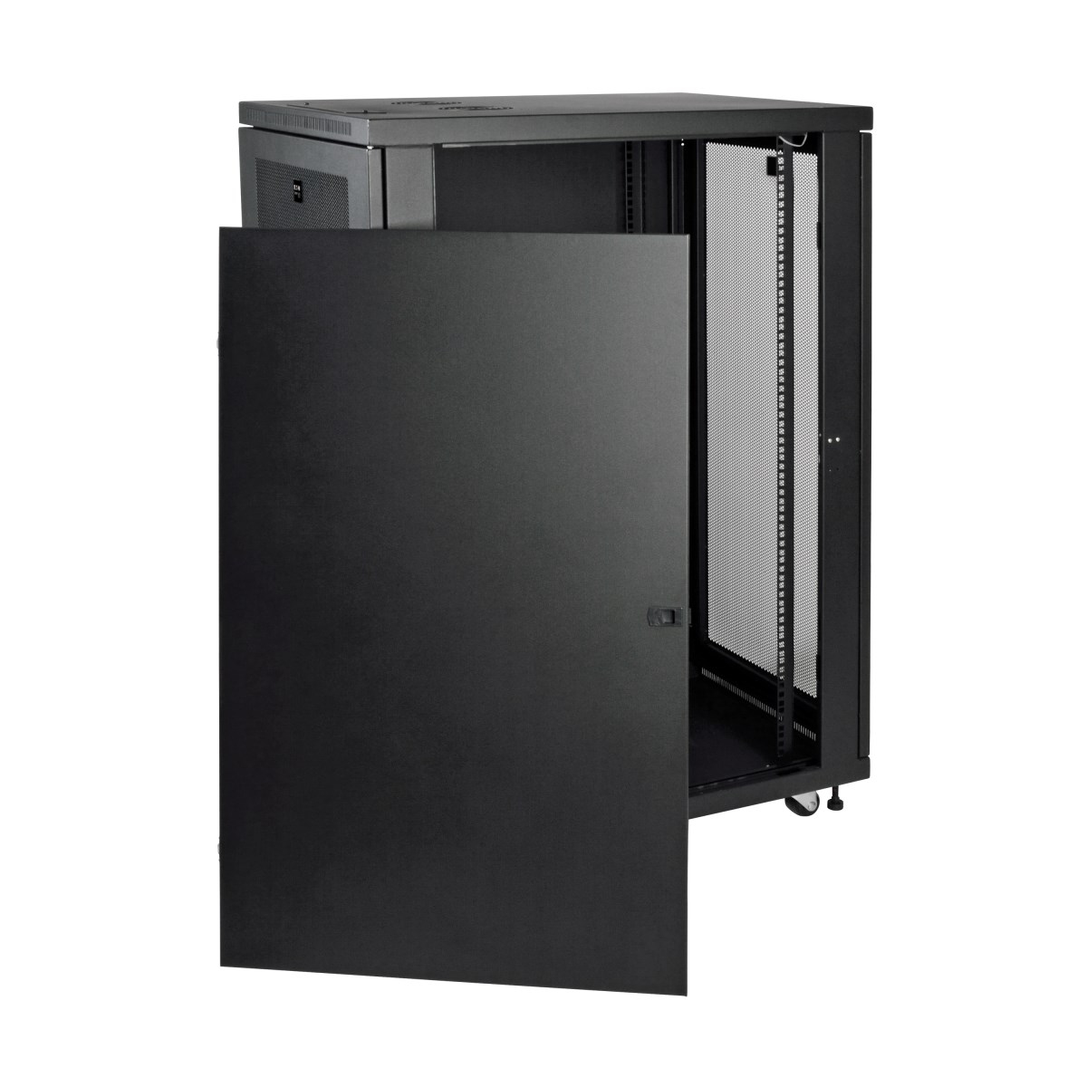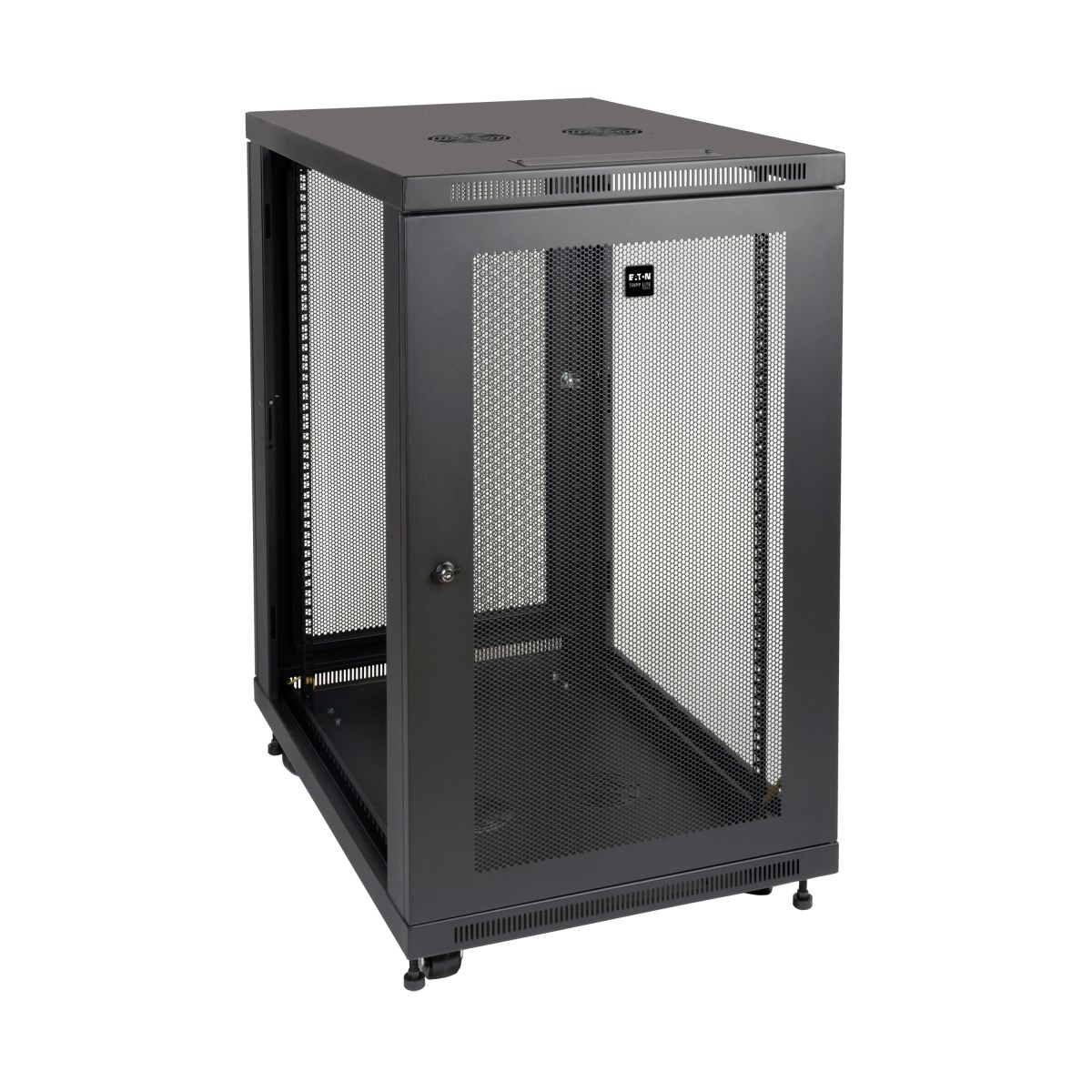 The reversible front and back doors and removable side panels lock securely to help prevent damage, tampering or theft. The doors and side panels are designed for quick release, making it simple to access connected equipment and cabling with little effort. Convenient top and bottom access panels allow easy cable routing through the cabinet. The vented doors and sides, as well as vents on the top and bottom, allow generous airflow from front to rear and top to bottom to keep your equipment cool and functioning at its peak.