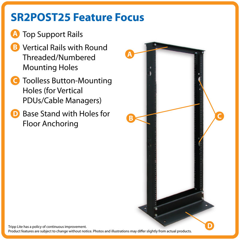 Tripp Lite Series 25U SmartRack 2-Post Open Frame Rack - Organize and Secure Network Rack Equipment |