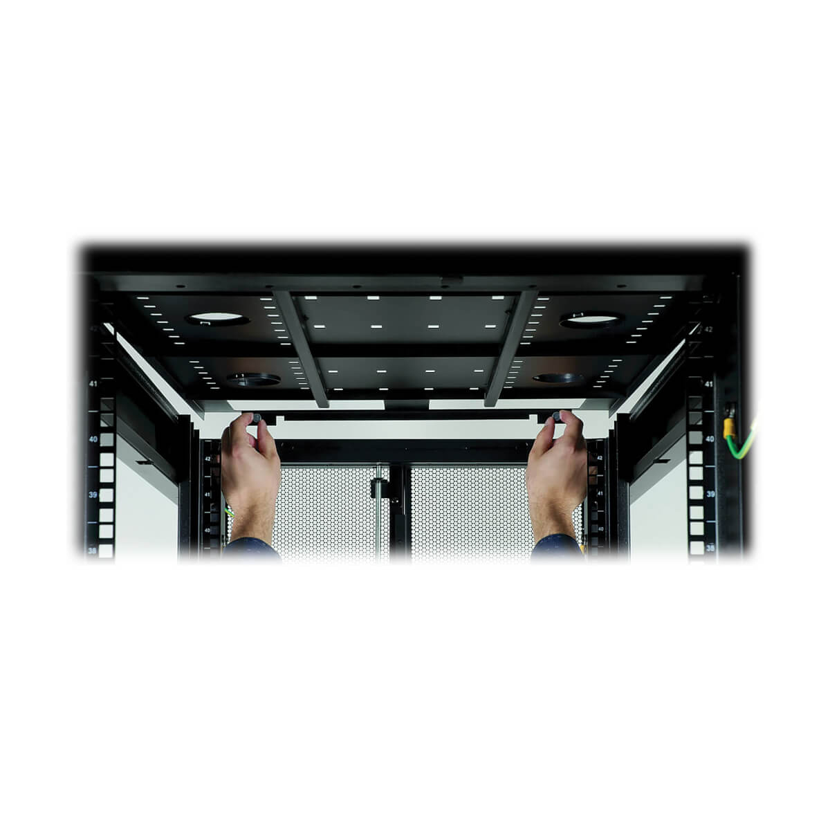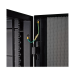 Built-in baying brackets allow the combination of two or more rack cabinets in a row. Center-to-center width can be set at 24 inches (600 millimeters) to match standard data center floor tiles.