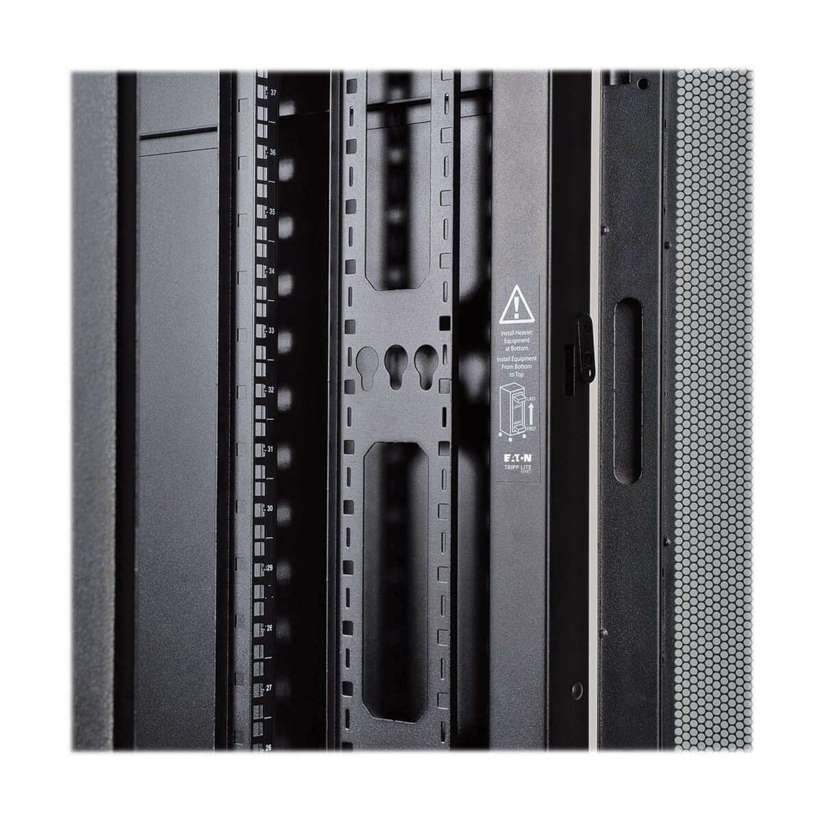 This SmartRack® 42U rack enclosure is designed for server rooms, IT closets, micro data centers, edge computing applications and other environments with essential rack-mount IT equipment. Constructed from heavy-duty steel with a durable black powder-coated finish, the SR42UB has a maximum stationary load capacity of 3500 pounds (1588 kilograms) and a maximum rolling load capacity of 2250 pounds (1022 kilograms).