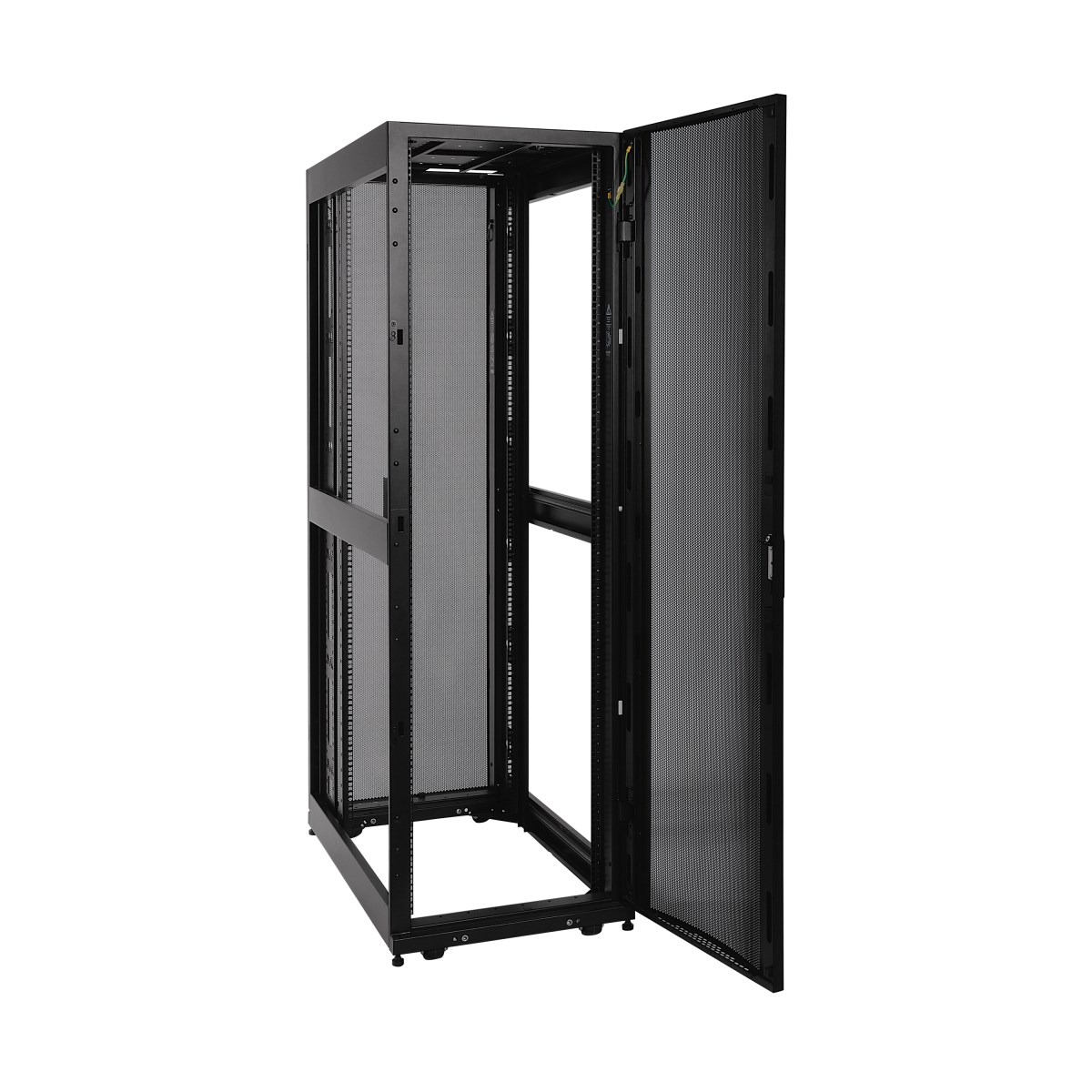 The SR42UBMD features a massive front-to rear ventilation capacity that meets or exceeds server manufacturer requirements. Its integrated baying tabs make it easy to combine multiple enclosures in rows for data center applications. This enclosure is also compatible with hot-aisle/cold-aisle configurations.