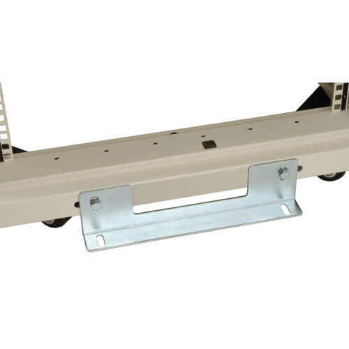 Included stabilizing brackets are used for shipment and can be reattached at the bottom of the enclosure frame on the inside or outside of the rack.
