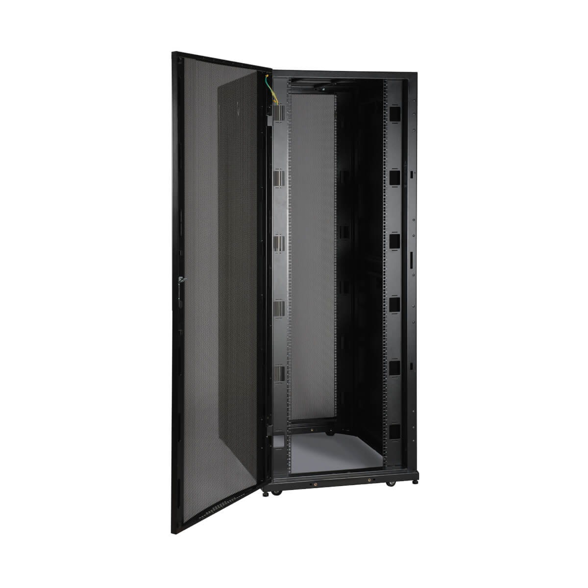 The SR45UBWD is a wide version of our standard 45U SmartRack®. This enclosure is 750 millimeters wide (30 inches) compared to the standard 600 millimeters wide. This extra width allows for high-density equipment installations. It allows cable management and PDU mounting off to the sides of the rack in order to keep these items out of the airflow for proper cooling.