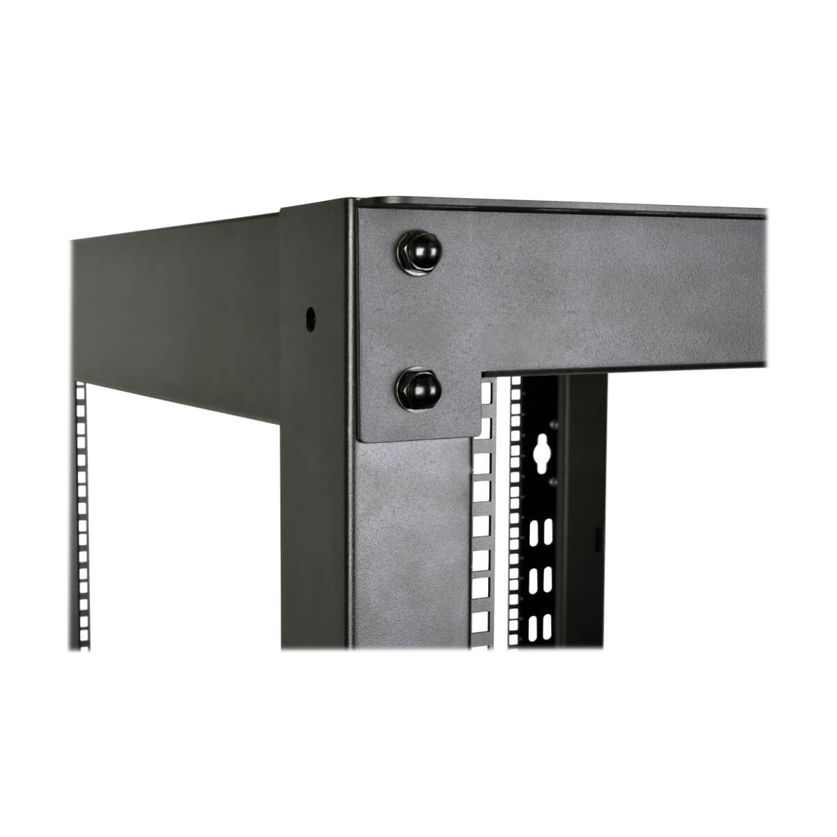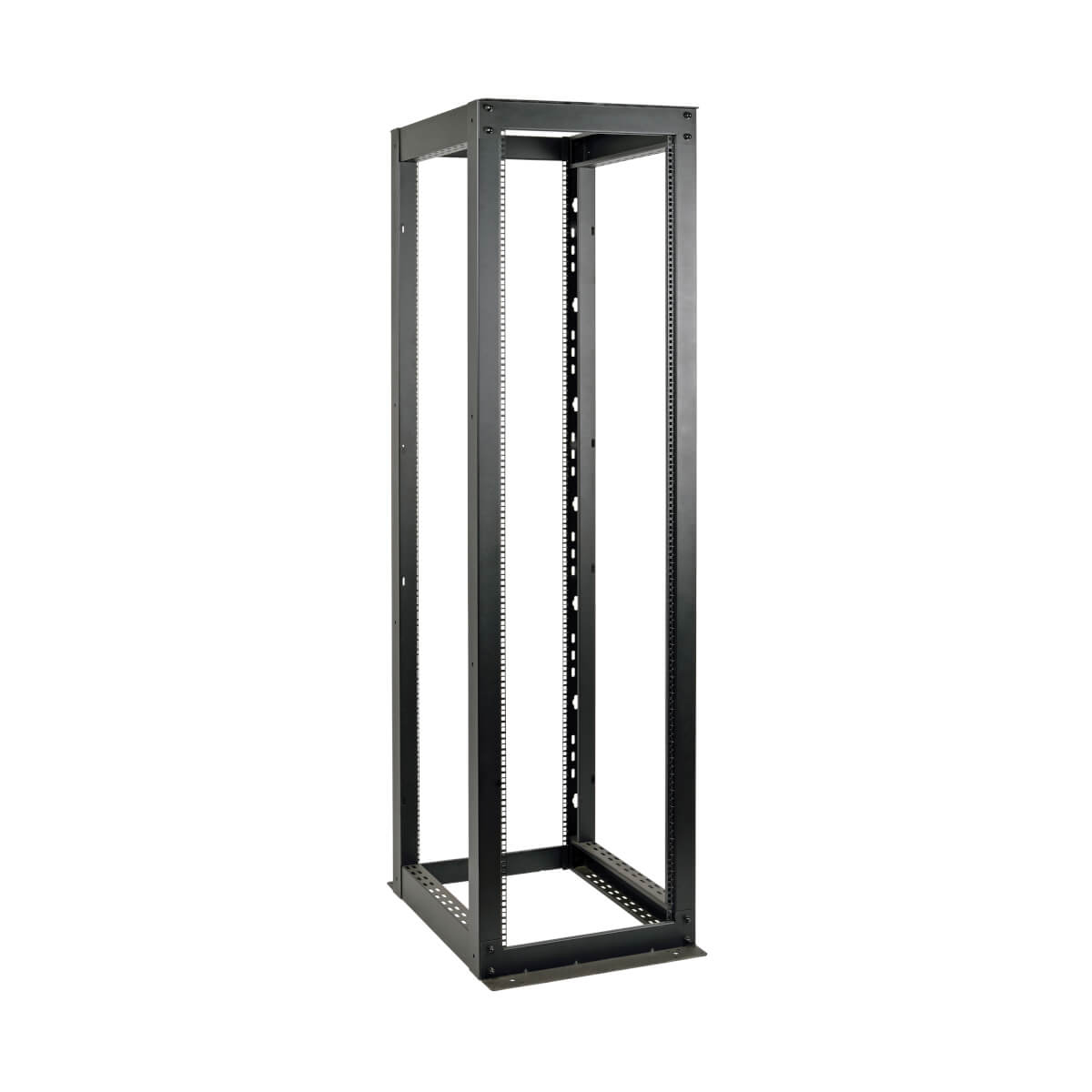 The open design of the SR4POST48HD provides unobstructed airflow and easy access to equipment and cabling. It has numbered, square-hole mounting positions for easy installation of standard 19-inch rack equipment. The SR4POST48HD supports equipment depths up to 35 inches. This rack also accommodates toolless button-hole mounting for vertical PDUs and cable managers.