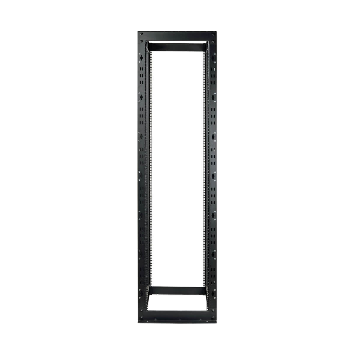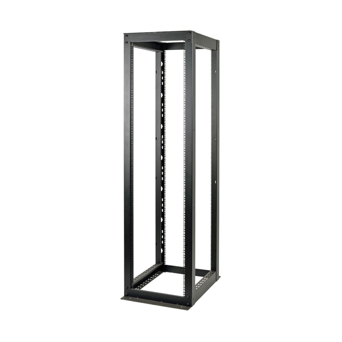This 48U Heavy-Duty 4-Post Open Frame Rack helps IT managers organize their equipment array and provides fast, easy access to installed IT equipment. The SR4POST48HD is a simple solution for housing IT equipment in secure environments and other areas that don't require a lockable rack solution. This 48U rack features heavy-duty cold-rolled steel construction with a black powder-coated finish for durability. It supports stationary loads up to 3,000 pounds (1360.8 kilograms). The SR4POST48HD comes with all the hardware required for assembly and has a self-squaring design with bolt-down provisions. For high-density applications, multiple units can be bolted together side by side.