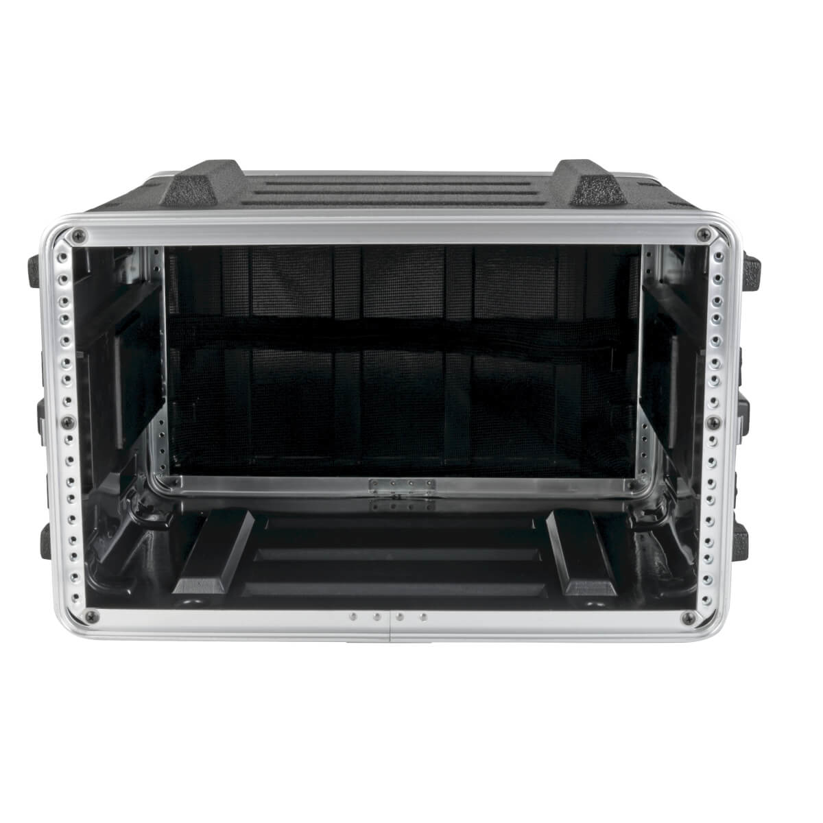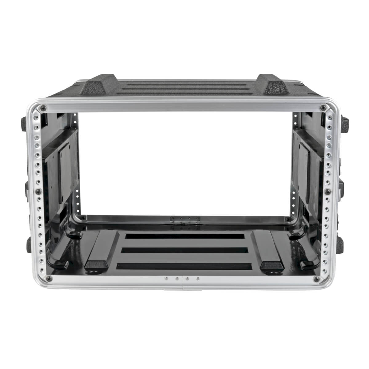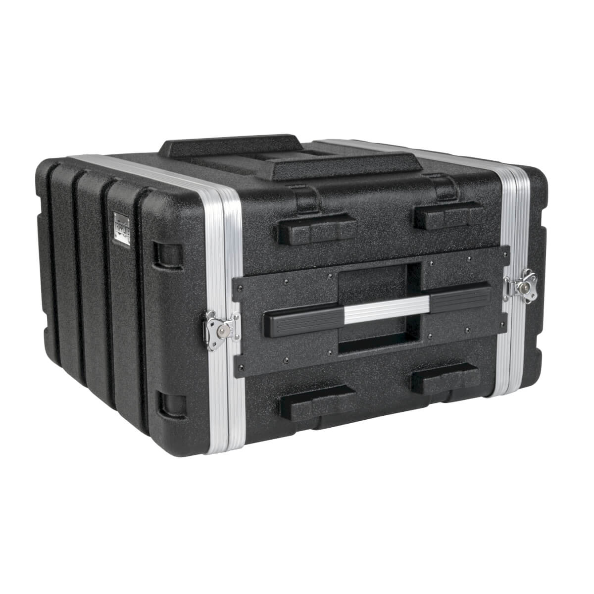 This SmartRack® 6U ABS flight case houses EIA-standard 19-inch rack equipment while it's being moved from one location to another. Constructed from heavy-duty ABS, the SRCASE6U features four stationary mounting rails that support up to 6U of servers, switches, patch panels, UPS systems and other rack components up to 20.5 inches deep. Maximum load capacity is 100 lbs (45.4 kgs). The case is ideal for transporting sensitive rack equipment to trade shows or other facilities without fear of damage.
