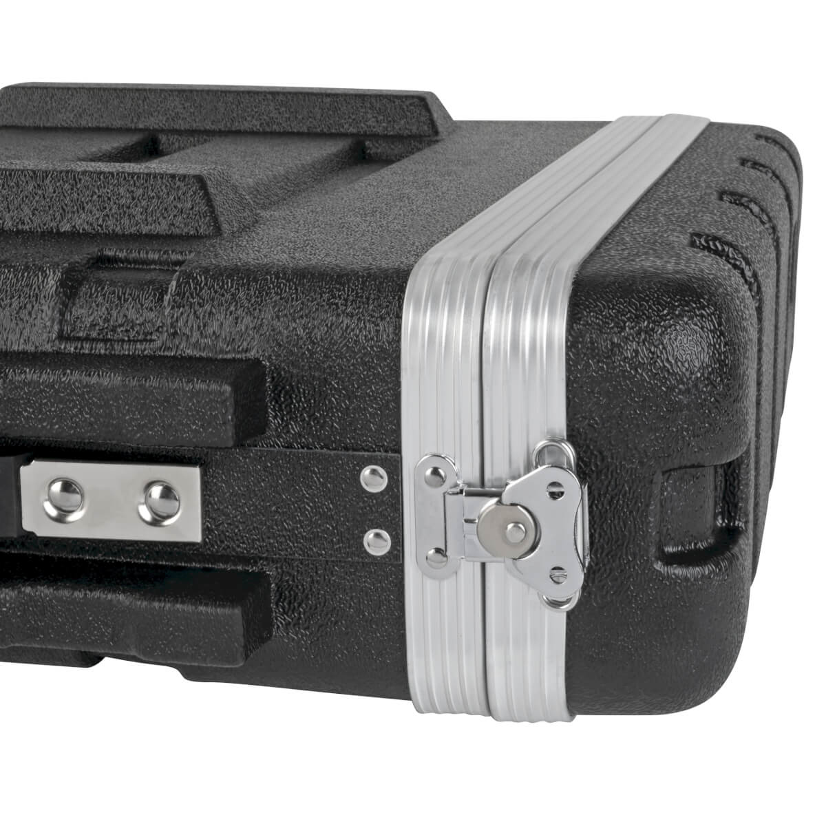 This 6U road case comes fully assembled with a built-in handle on each side for convenient transportation. Once the device is mounted inside using the included hardware, both the front and rear covers with rubber gaskets are latched securely to keep out moisture, dust and other hazardous elements. A zippered pouch inside one cover stores extra hardware or other accessories. The SRCASE6U stacks securely with other identical cases.