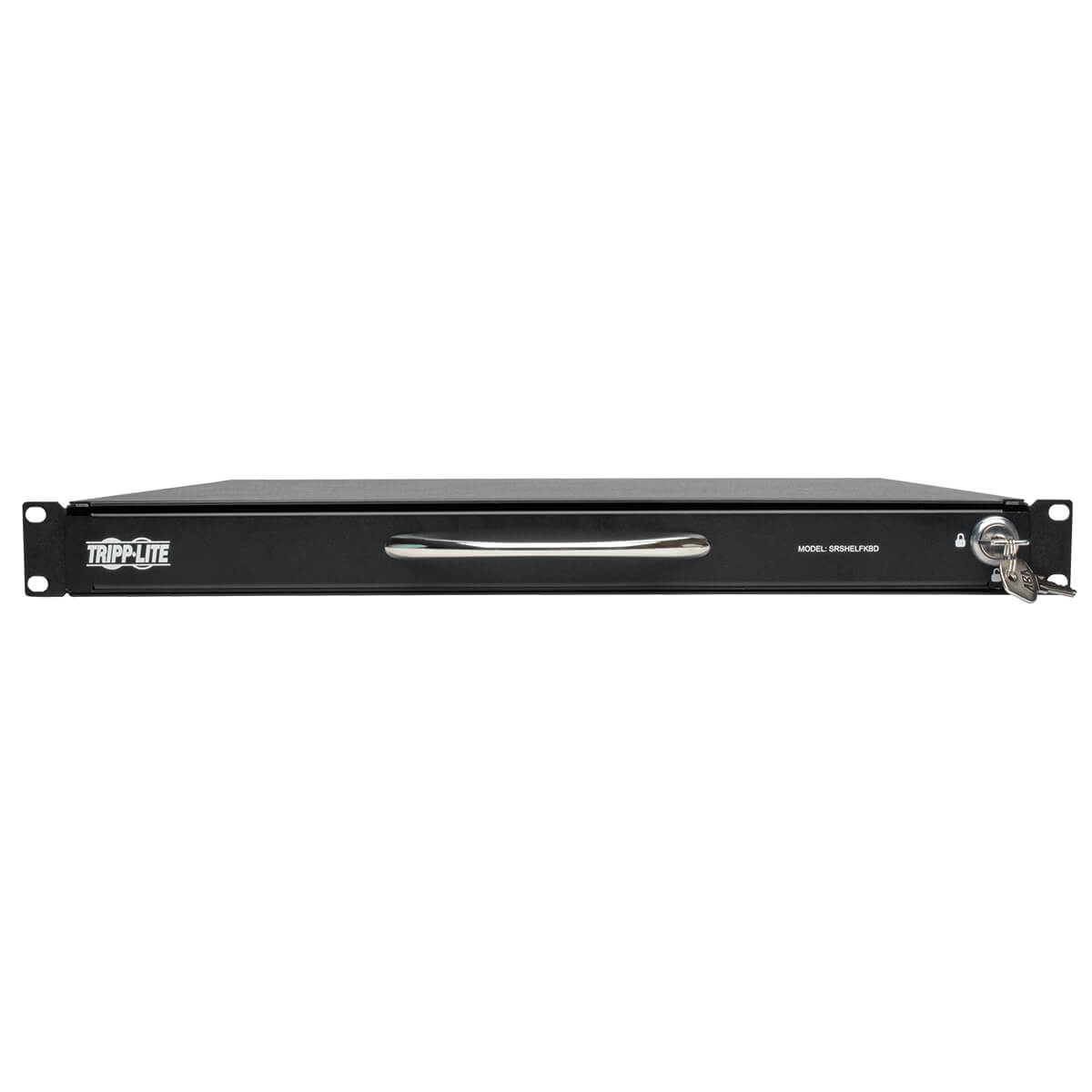 The SRSHELFKBD SmartRack® 1U Rack-Mount Keyboard is a full 104-key keyboard and two-button touchpad designed for mounting in an EIA-standard 19-inch rack. Ideal for use with KVM switches and servers that don’t include a keyboard, the SRSHELFKBD comes with a USB-A cable for quick connection. Use the convenient handle to slide the keyboard out of the rack for easy access and slide it back, hidden away, when not in use. Protected by a heavy-duty steel housing with a black finish. Compatible with both two- and four-post racks (a B019-000 bracket is required for 2-post mounting).