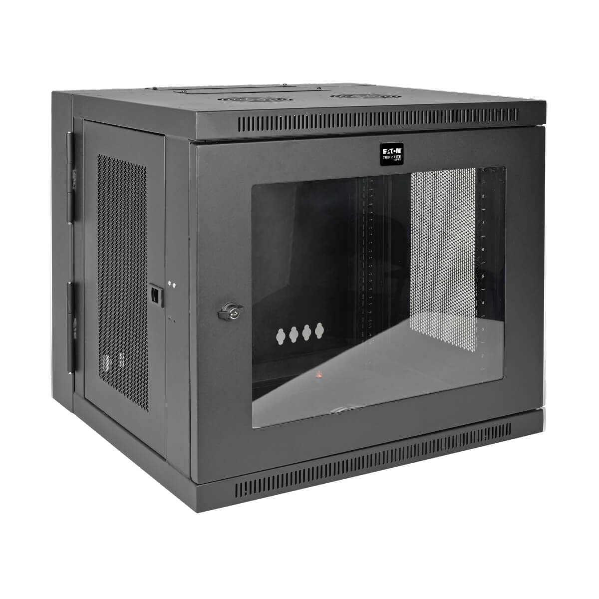 EATON, SMARTRACK 10U LOW-PROFILE SWITCH-DEPTH WALL-MOUNT RACK ENCLOSURE CABINET WITH CLEAR ACRYLIC WINDOW, HINGED BACK |