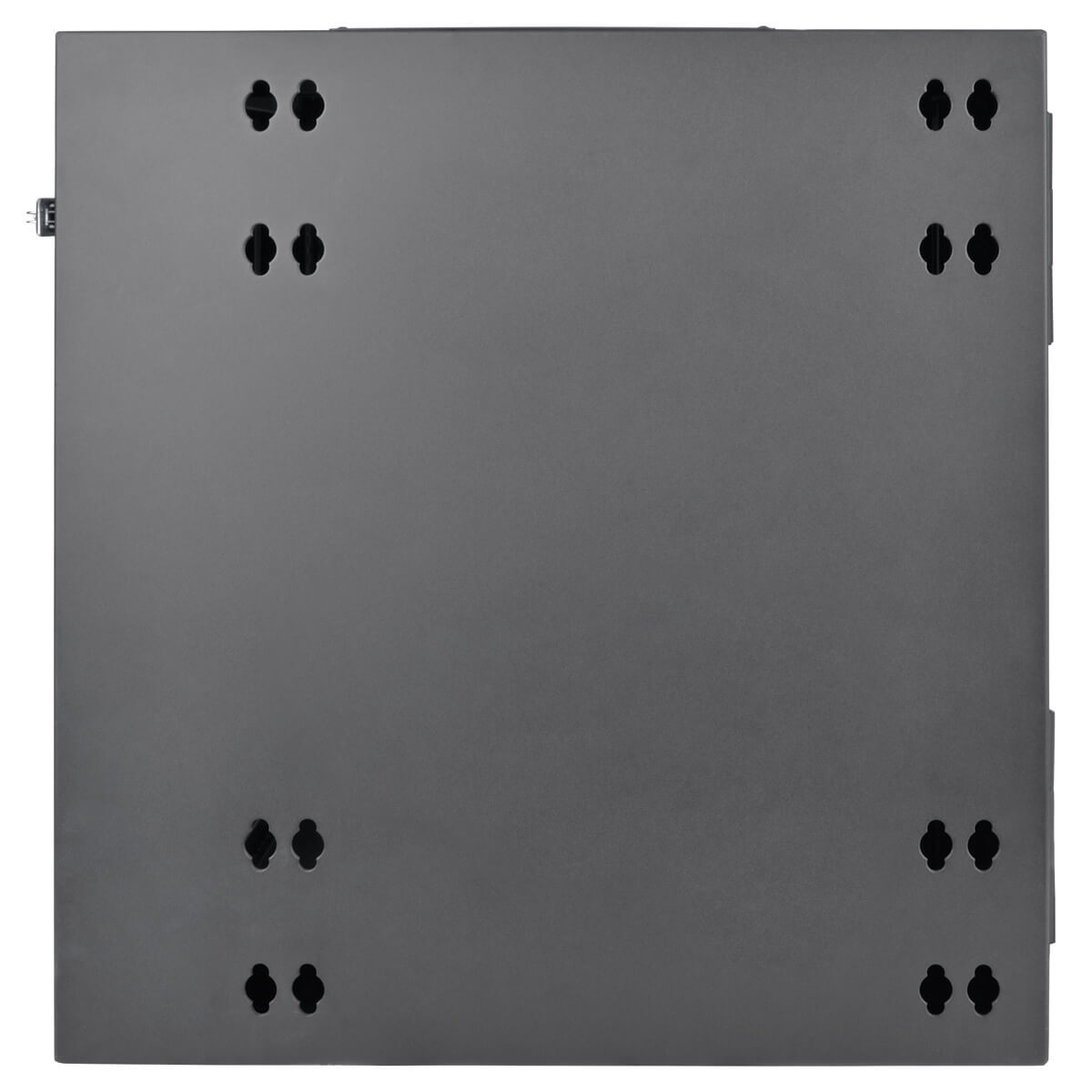 The cabinet swings away from the wall on a sturdy hinge, allowing easy access to equipment and cabling during installation and maintenance. To ensure your valuable equipment stays secure, the doors and side panels lock. The top, bottom and removable side panels are vented, which allows air to flow freely through the rack to keep equipment cool. The reversible doors can open left or right by rotating the cabinet 180° before mounting. Convenient top and bottom ports allow easy cable routing through the cabinet.