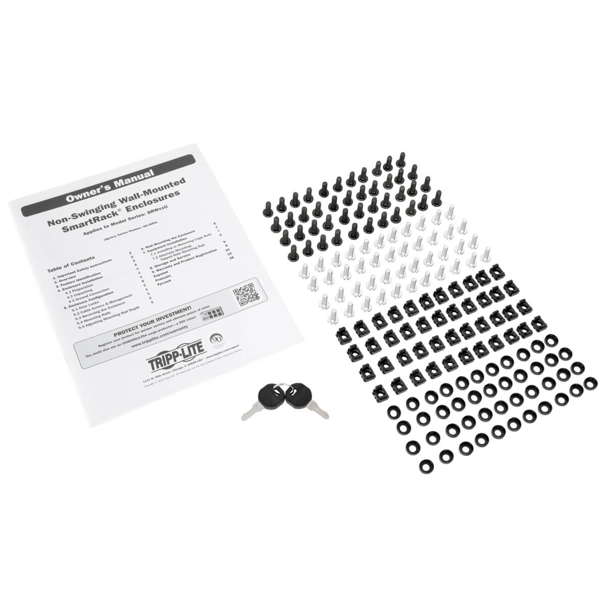 The SRW21UG comes fully assembled and ready to mount to the wall or use the optional SRCASTER caster kit (sold separately) to make it a mobile rolling rack. Square and 12-24 threaded mounting holes and numbered rack spaces make equipment installation easy. The vertical mounting rails adjust in 7/8-inch increments to accommodate equipment up to 16.5 inches deep, such as network switches and patch panels.