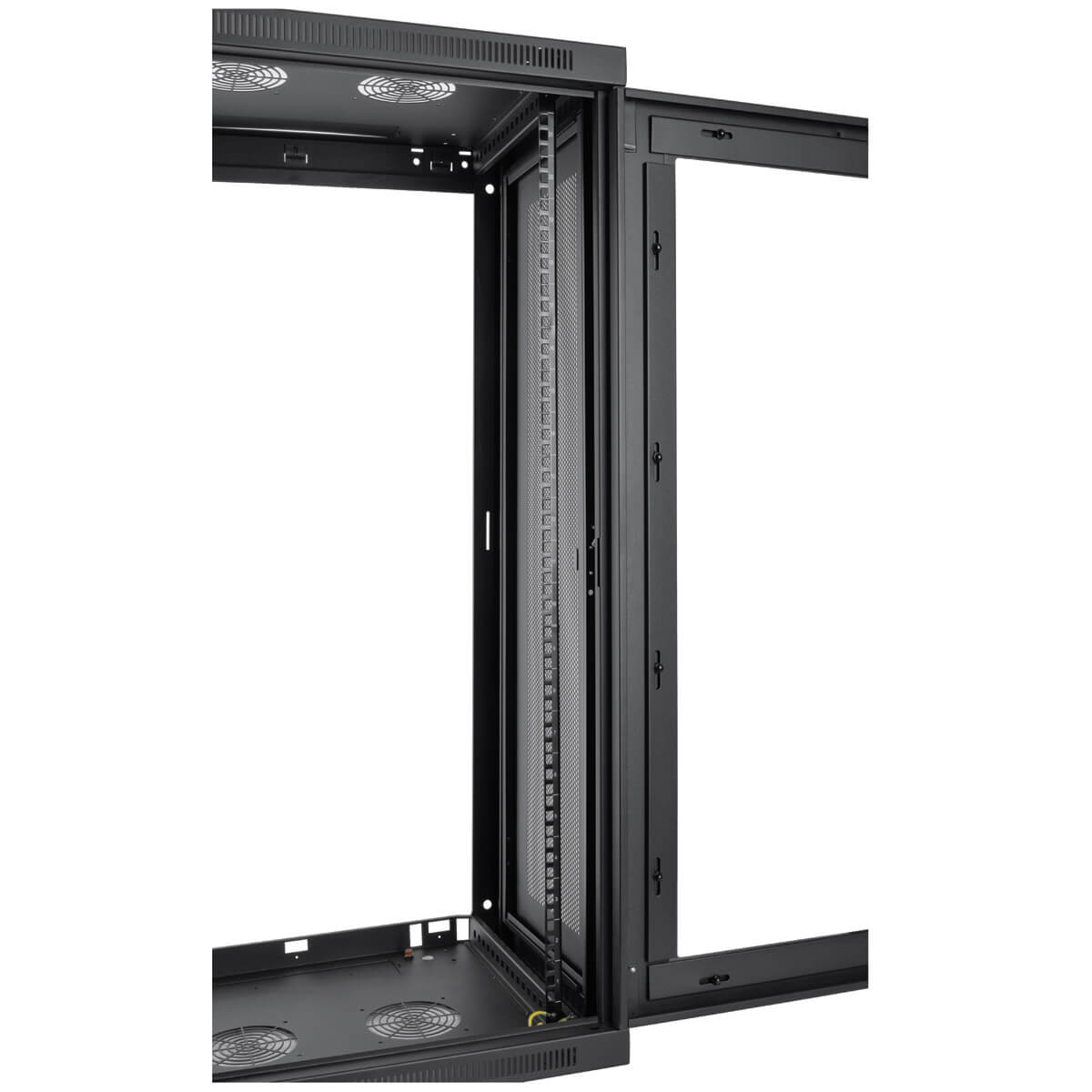 The front door features a shatter-resistant clear acrylic window that lets you monitor equipment without unlocking the enclosure. Not only does the window help prevent equipment tampering and reduce acoustic noise, but it also adds visual flair to your IT installation.