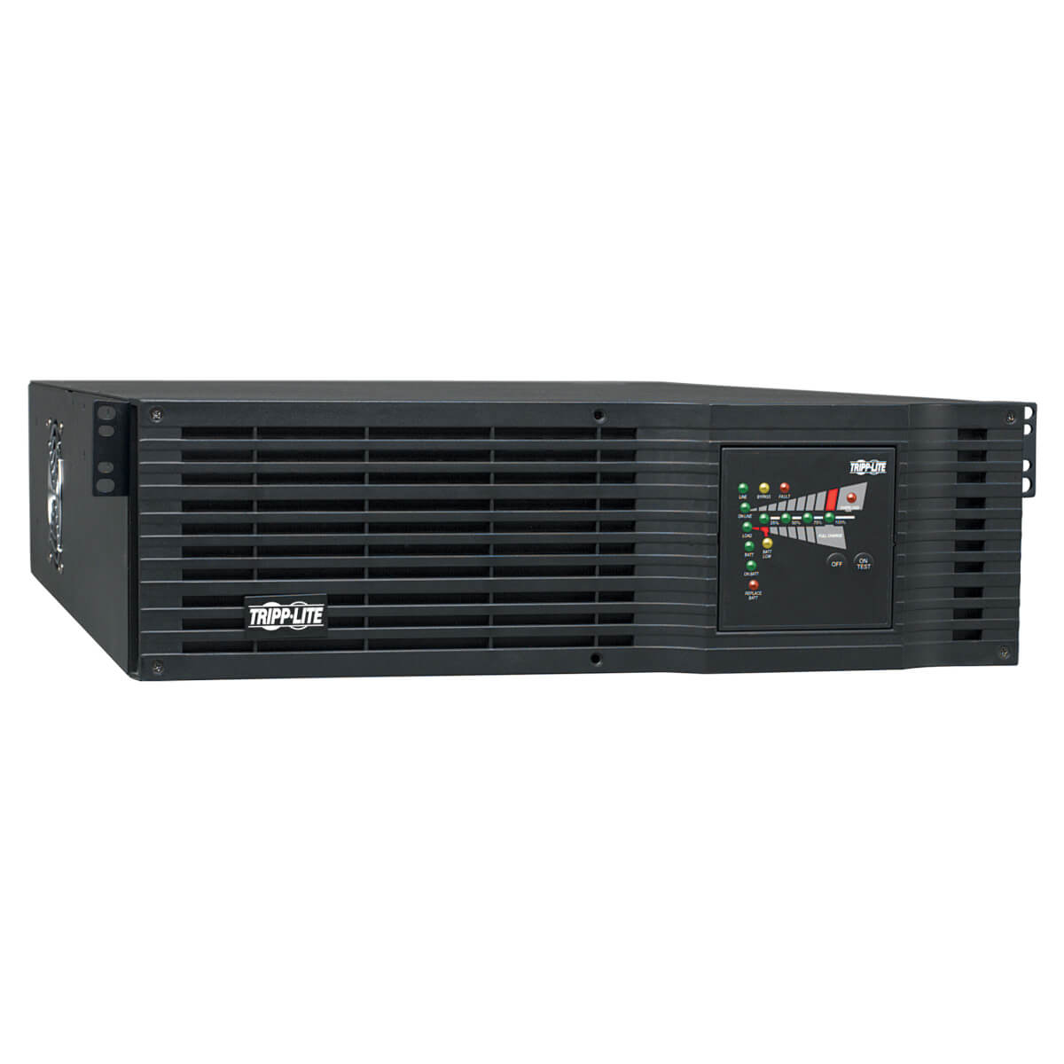 3000VA on-line, double-conversion UPS system for critical server, network and telecommunications equipment. 3U rackmount form factor with an installed depth of 26 inches. Expandable battery runtime with optional BP72V15-2U (limit 1), BP72V28RT-3U (multi-pack compatible) and BP72V18-2US (multi-pack compatible) external battery packs. Full time sine wave 110 or 120V output with +/-2% voltage regulation. Online, double-conversion Uninterruptible Power Supply (UPS) actively converts raw incoming AC power to DC, then re-converts output back to completely regulated, filtered AC output. Operates continuously without using battery power during brownouts to 65V and overvoltages to 150V. Highly efficient operation in optional economy mode saves BTU heat output and energy costs. NEMA L5-30P input plug. NEMA 5-15, NEMA 5-15/20R and NEMA L5-30R output receptacles. Network-grade AC surge and noise suppression. Zero transfer time between AC and battery operation. Network management interfaces support simultaneous communications via USB port, DB9 serial port and SNMPWEBCARD slot. Built-in DB9 port offers both enhanced RS-232 enabled monitoring data, plus contact closure monitoring ability. HID-compliant USB interface enables integration with built-in power management and auto shutdown features of Windows and Mac OS X. Supports simultaneous detailed monitoring of equipment load levels, self-test data and utility power conditions via all 3 network interfaces. Includes PowerAlert monitoring software and complete cabling. Emergency Power Off (EPO) interface. Integrated two-bank PDU switching supports load shedding and remote reboot of connected equipment. 3-stage metered current monitoring and battery charge status LEDs. LED display panel easily rotates for viewing in rackmount or tower configurations. Dataline surge suppression for dialup, DSL or network Ethernet connection. Utility power and voltage regulation LEDs. Audible alarm. Self-test. Fault-tolerant auto-bypass mode. 4-post rackmount accessories included; 2-9USTAND tower kit and 2POSTRMKITHD 2-post rackmount accessories available. Field-replaceable, hot-swappable internal batteries and external battery packs. Attractive all-black color scheme. $250,000 Ultimate Lifetime Insurance (U.S., Canada, and Puerto Rico only).