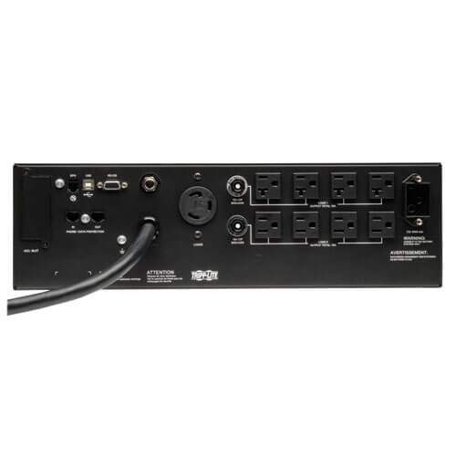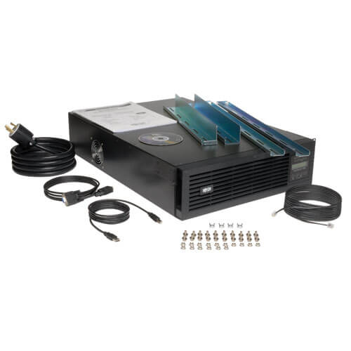 Tripp Lite Smart Online UPS systems offer high performance power protection ideal for critical server and network equipment in datacenters, computer rooms and network closets. Online, double-conversion Uninterruptible Power Supply (UPS) with Transformerless, IGBT technology maintains perfectly regulated output power by continuously converting raw AC input to DC, then re-converting output back to AC. Fully regulated sine wave AC output with +/-2% voltage regulation powers network equipment continuously, even during severe brownouts and overvoltages, all without depleting UPS battery reserves. Maintains battery-derived AC output during power failures with zero transfer time. Extended runtime options available. Interactive LCD interface reports UPS operating mode, detailed UPS and site-power data, plus enables a variety of UPS setup and configuration options. Highly efficient operation in optional economy mode saves BTU heat output and energy costs. Network management interfaces support communications via USB, RS-232, contact-closure and optional SNMPWEBCARD network interface. Built-in DB9 port offers both enhanced RS-232 data and basic contact closure monitoring ability. HID-compliant USB interface enables integration with built-in power management and auto shutdown features of Windows and Mac OS X. Includes PowerAlert monitoring software and complete cabling. Emergency Power Off (EPO) interface. LED display reports UPS operating mode, line power availability, battery mode operation, inverter operation, ECO mode status and output power availability. Audible alarm with push-button momentary alarm-cancel and silent-mode LCD configuration options. Programmable self-test. Battery independent restart. Fault-tolerant auto-bypass mode. Field-replaceable, hot-swappable internal batteries and external battery packs.