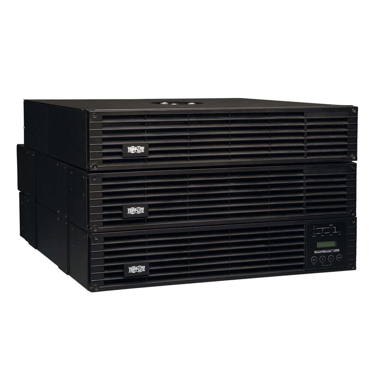 Hardware is included for mounting the 208 to 120V UPS system in 6U of space in an EIA-standard 19-inch 4-post rack. Use two optional 2POSTRMKITHD kits for 2-post rack mounting or the optional 2-9USTAND for mounting in an upright tower position.