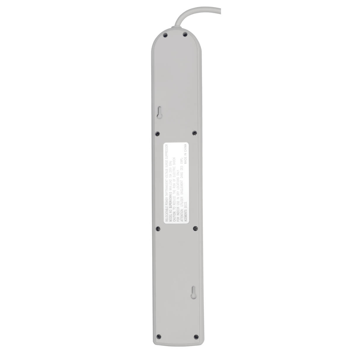The Protect It!® SUPER6OMNI D offers economical AC surge suppression for full protection of 220-250V workstations, desktop PCs, telecom systems and other sensitive electronics. Built-in AC surge suppression shields connected equipment from damage and performance problems due to transient surges. The SUPER6OMNI D offers six universal outlets and a 1.8-meter AC line cord with German/French plug. Internal shutters offer additional safety. AC suppression rated at 750 joules shields equipment from surges and line noise. Lighted on/off switch with integrated circuit breaker provides power control over connected equipment. Right-angle outlets keep connected cords from blocking adjacent outlets. Attractive light gray high-impact housing.