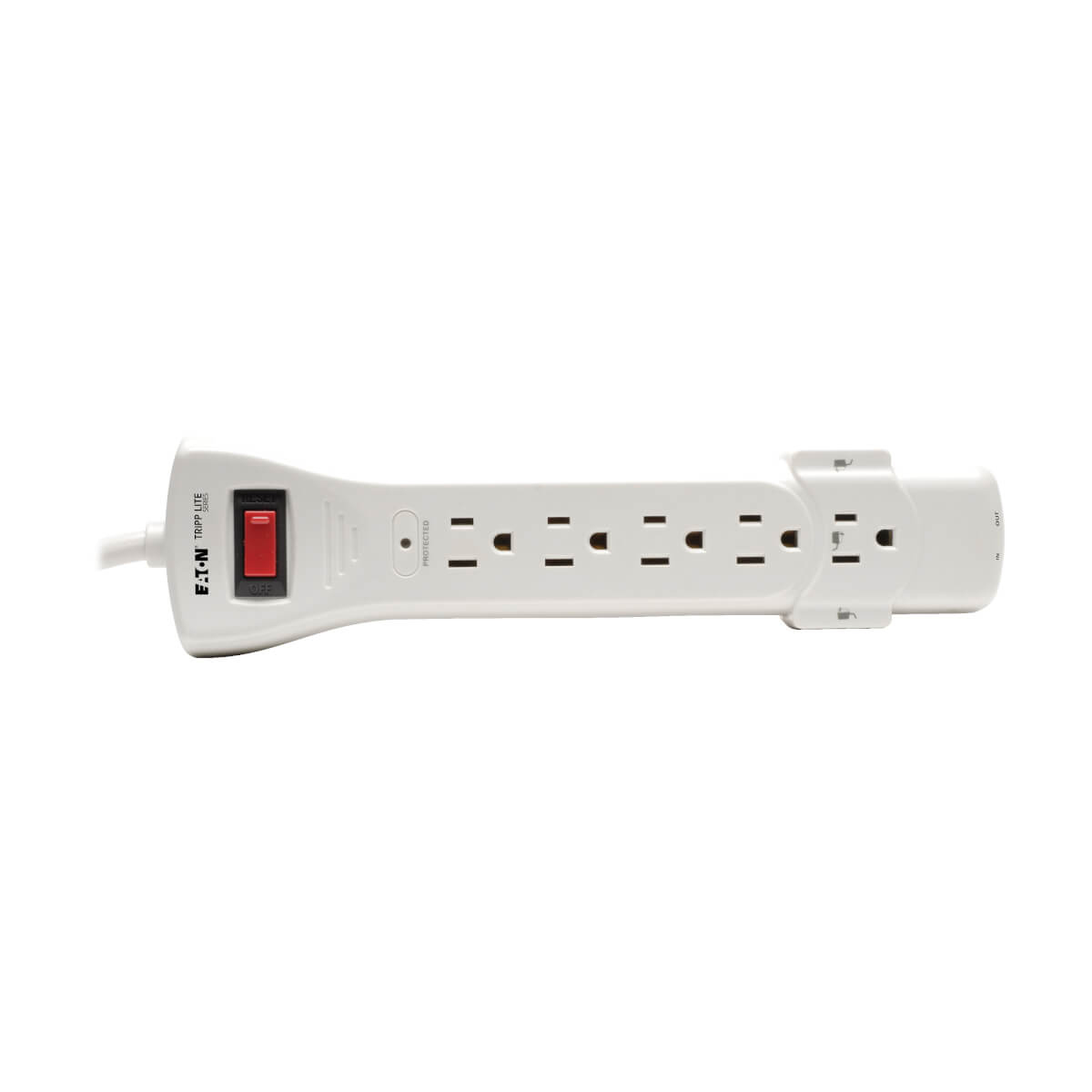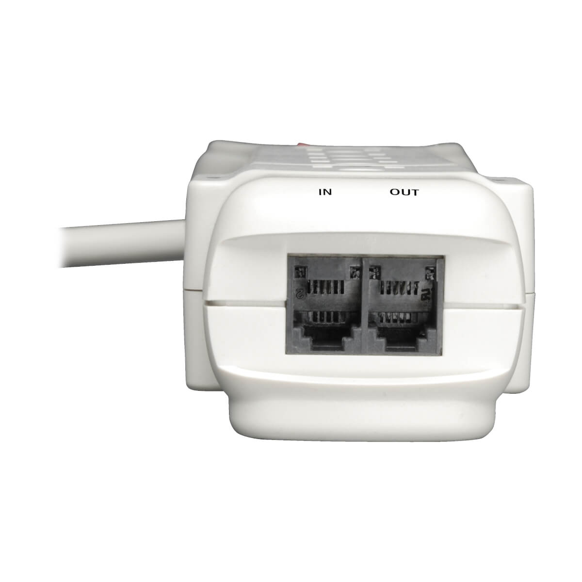 Tripp Lite's SUPER6TEL12 surge suppressor offers complete AC and phone line surge suppression for comprehensive protection of workstations, desktop PCs, telecom systems and other sensitive electronics. High-grade AC surge suppression shields connected equipment from damage and performance problems due to transient surges. Set of RJ11 telephone line suppression jacks protect dialup and DSL modem lines, fax machines, cordless phones and more. SUPER6TEL12 offers 7 total outlets, 12 foot cord with a space-saving right-angle plug and diagnostic LEDs to warn of wiring problems and suppressor damage. Heavy grade AC suppression rated at 1080 joules shields equipment from surges and line noise. Attractive white suppressor housing with keyhole mounting tabs and 3 designated transformer plug outlets offers convenient protection of desktop computer equipment and accessories. $50,000 Ultimate Lifetime Insurance (U.S., Canada, and Puerto Rico only).