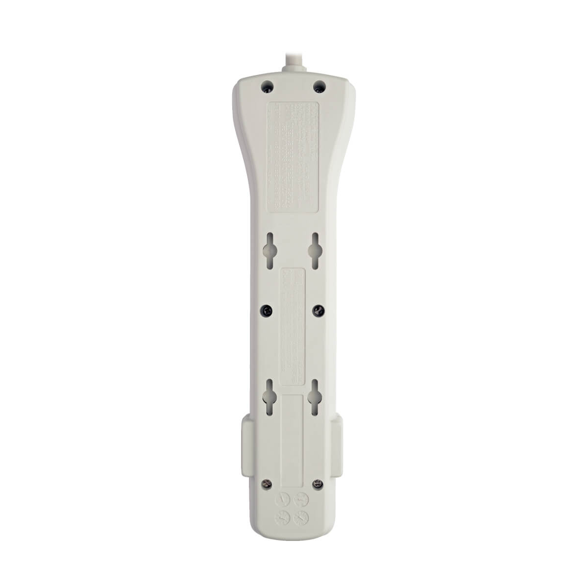 The seven-foot (2.1-meter) AC power cord allows the SUPER7 to reach nearby outlets, while its right-angle NEMA 5-15P plug allows furniture and equipment to be placed flush against the wall to save space in your workstation. Keyhole slots incorporated into the bottom panel provide convenient wall or desk mounting options for the light gray plastic housing.