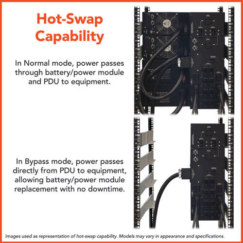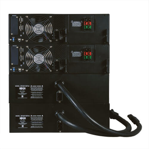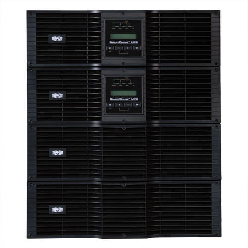 Tripp Lite SU16KRT8 16,000VA / 16kVA / 14,400 watt online, double-conversion UPS system offers complete power protection for critical server, network and telecommunications equipment in a 12U rack/tower configuration. This system delivers complete N+1 redundancy when used at loads up to 8kVA, and non-redundant operation at loads between 8 and 16kVA. Fault-tolerant auto-bypass prevents unexpected service interruptions during UPS overload or internal fault conditions. Included parallel PDU with manual bypass switching enables hot-swappable replacement of all major UPS system components in both N+1 and combined operating modes. Enhanced availability, fault tolerance and simple hot-swap replacement options make this UPS ideal for advanced networking applications in data centers, computer rooms, network closets and rugged industrial locations.
