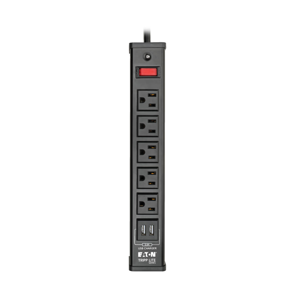 EATON, 5-OUTLET SURGE PROTECTOR WITH 2 USB PORTS (3.4A SHARED) - 6FT (1.83 M) CORD, 450 JOULES, METAL HOUSING |