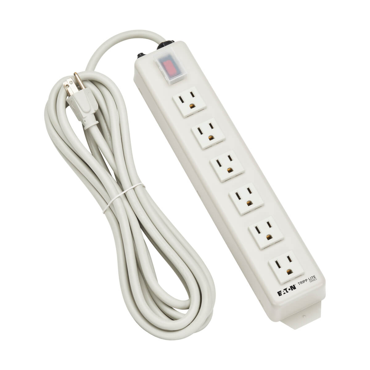Tripp Lite's Power It! TLM615NC power strip offers reliable, convenient and cost-effective power distribution for appliances, power tools, lighting and other electrical equipment. Includes 6 NEMA 5-15R outlets, 15-foot AC power cord and keyhole mounting slots. Multi-outlet strip reduces cable clutter and enables the connection of multiple electrical devices to a single AC wall socket. Features rugged metal case to stand up to the most demanding environments, illuminated power switch with transparent cover to prevent accidental shutoff and 15A integrated circuit breaker to prevent dangerous overloads. Lifetime warranty.