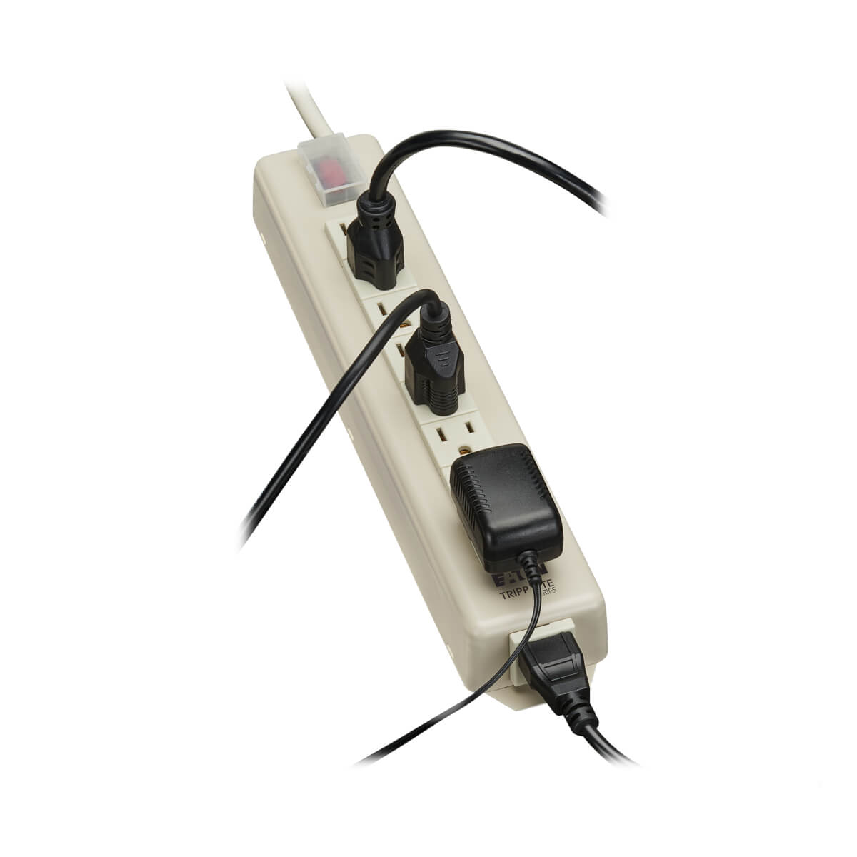 - Includes an end-mounted outlet ideal for accommodating a transformer without blocking other outlets