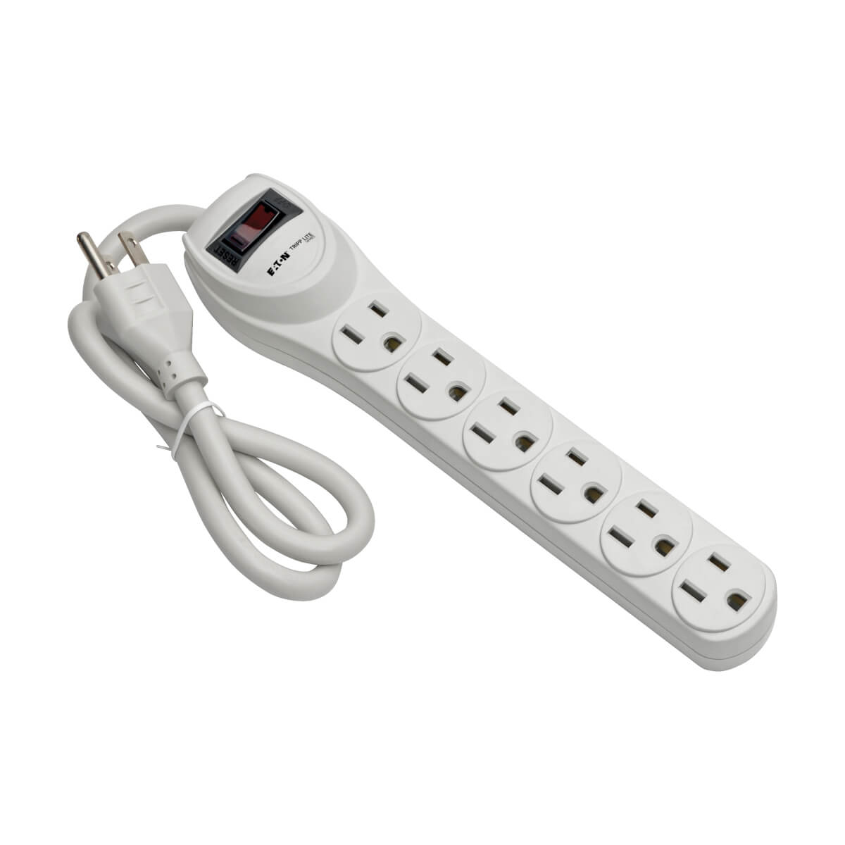 EATON, SURGE PROTECTOR/SUPPRESSOR 6 OUTLETS 2' CORD 750 JOULES, HOLDS 3 TRANSFORMERS |