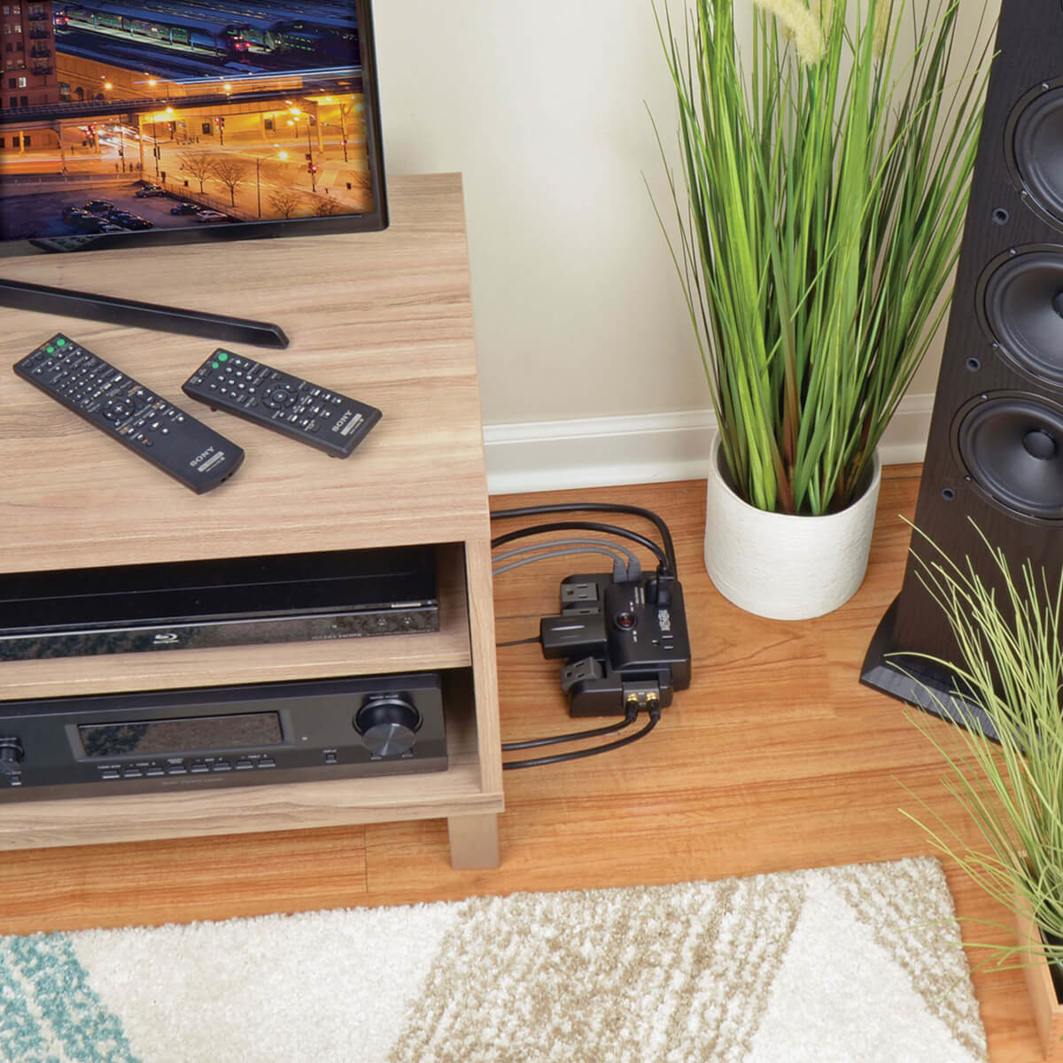 - 1440 joules surge suppression rating with EMI/RFI line noise filtering help components perform at their peak (sharper, crisper video; deeper, fuller audio and longer component life spans)