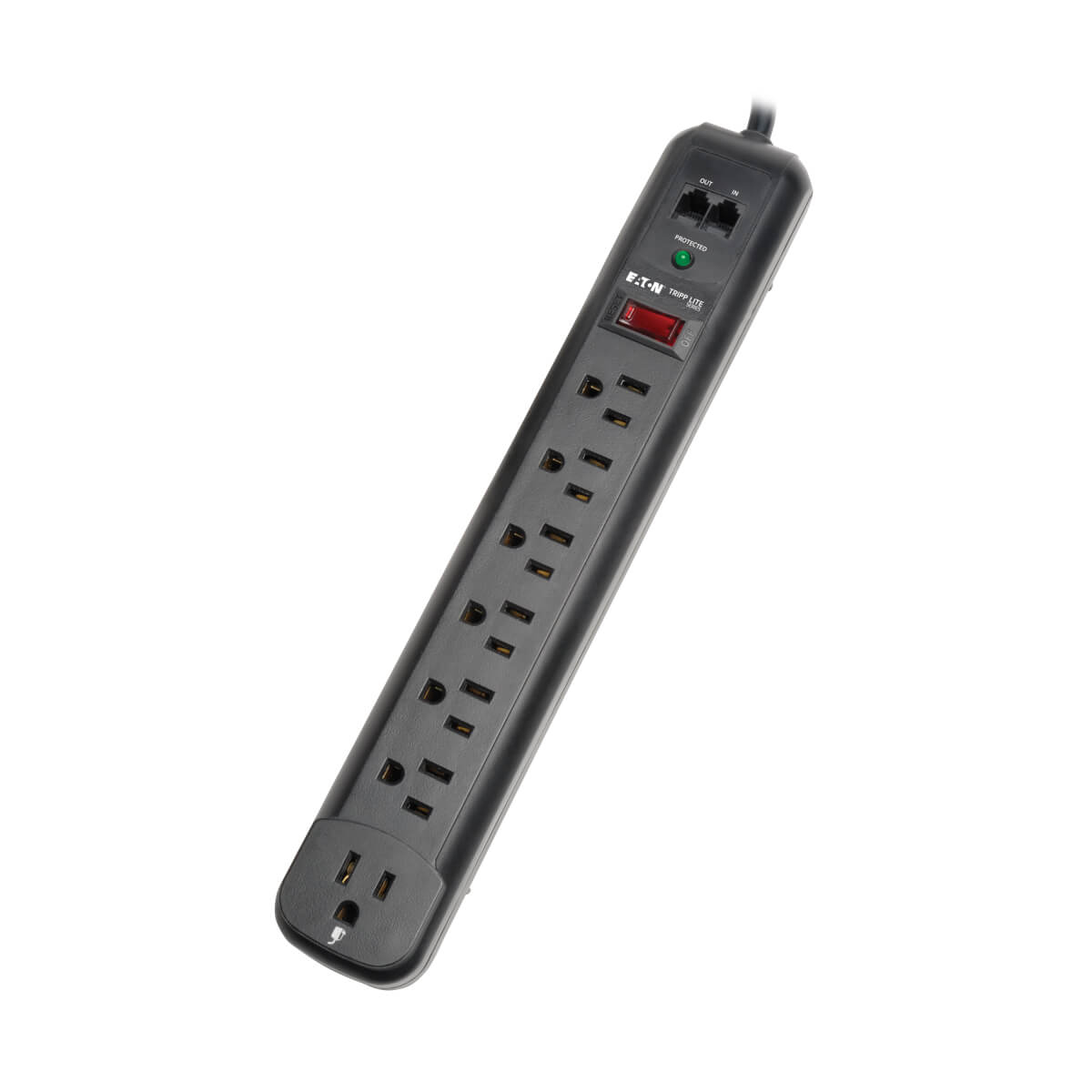 EATON, PROTECT IT! 7-OUTLET SURGE PROTECTOR, 6-FT. CORD, 1080 JOULES, MODEM/FAX PROTECTION, BLACK HOUSING |