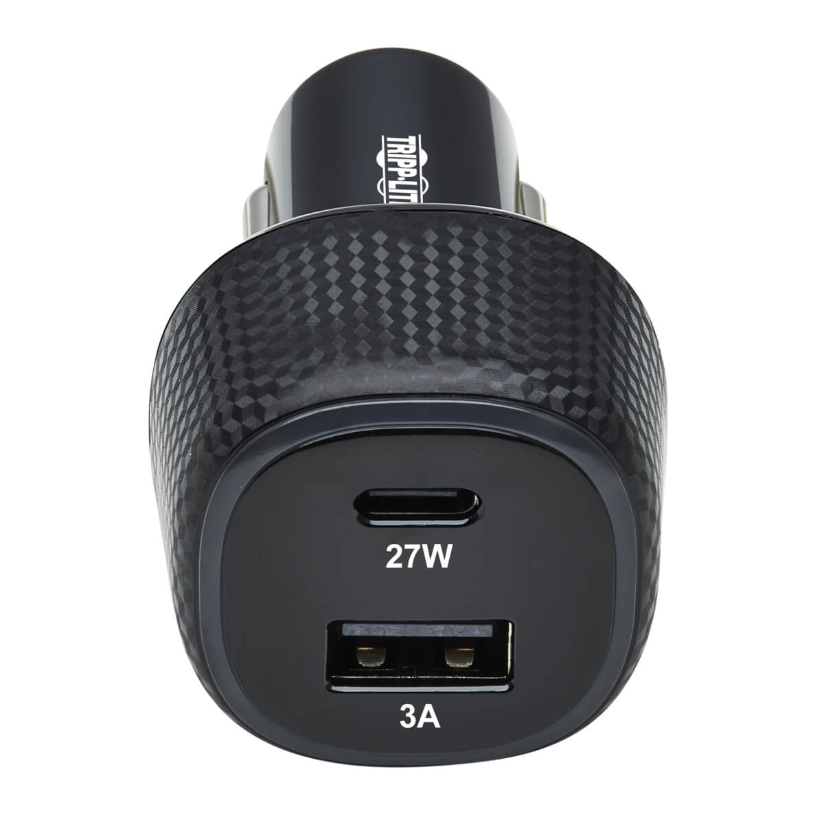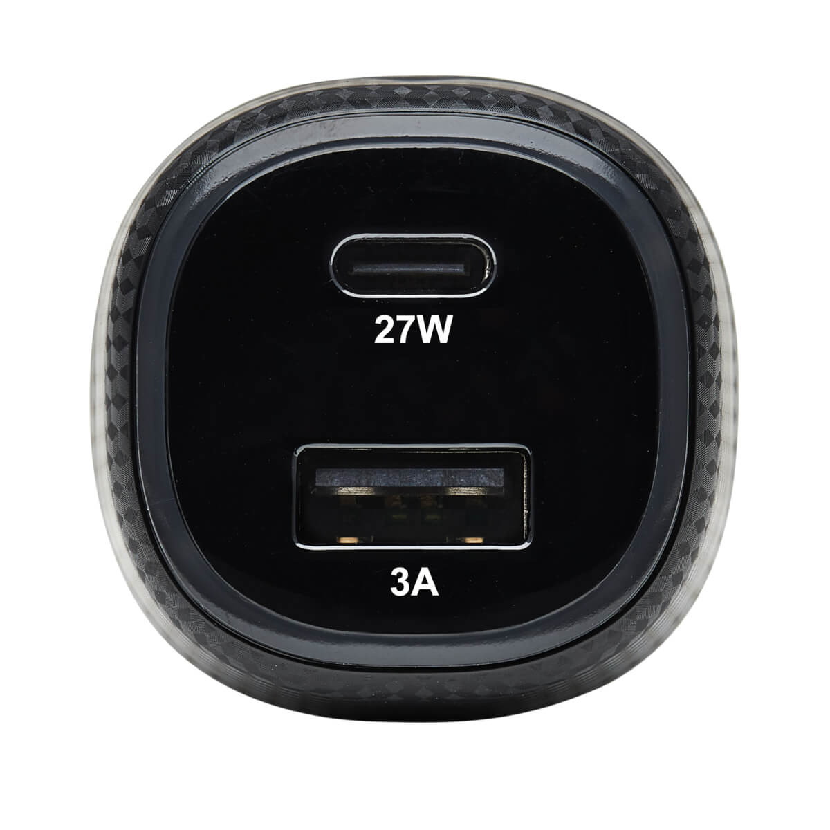 Dual-Port USB Car Charger with 45W Charging - USB-C (27W) QC4+, USB-A (18W) QC 3.0, Black