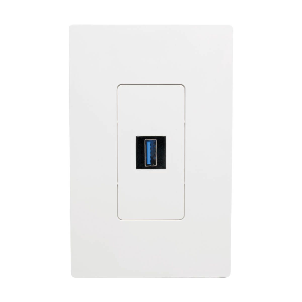 USB-A female keystone jack connector snaps easily into universal keystone wallplate or panel