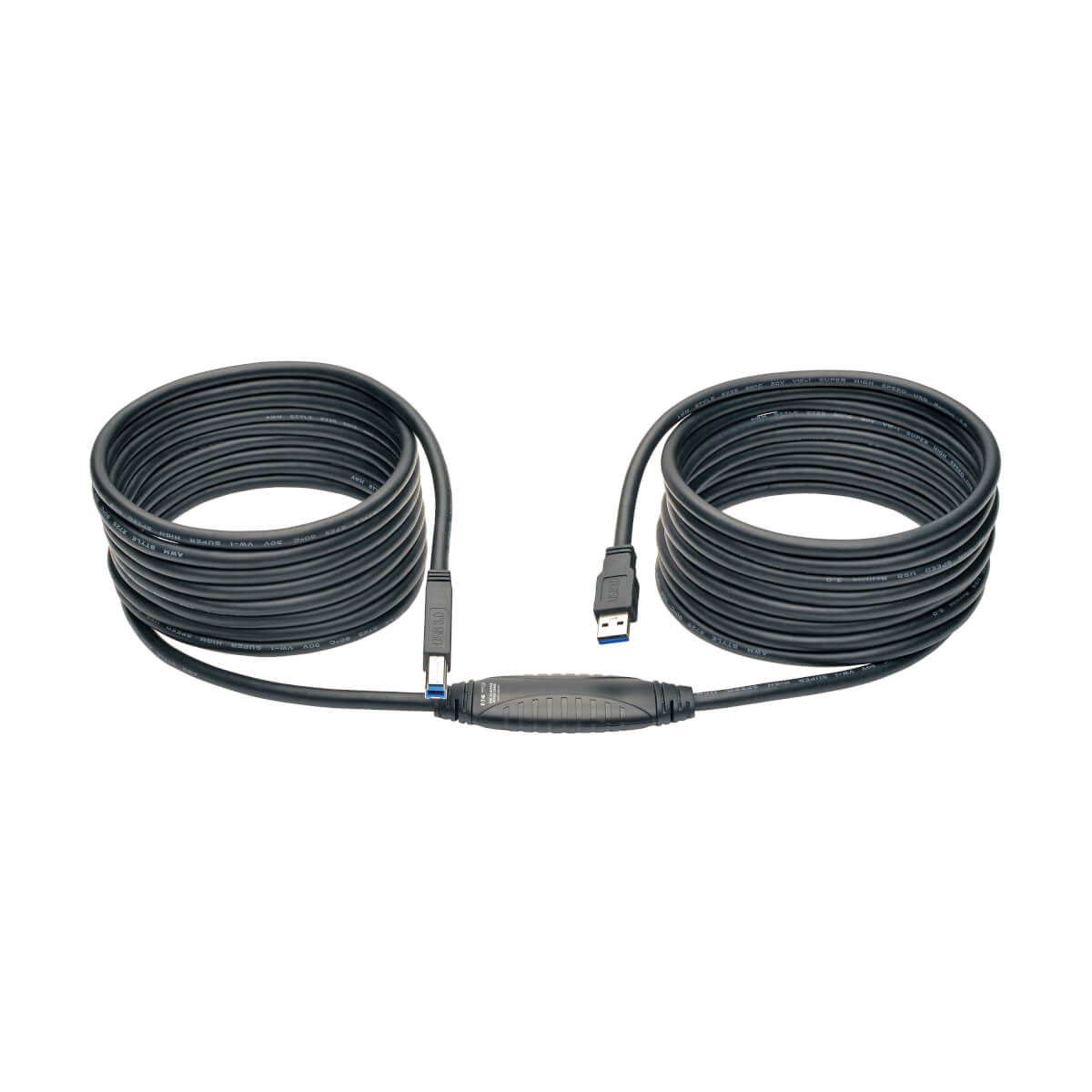 This USB 3.0 Active A/B cable overcomes the 16-foot (five-meter) USB distance limitation with an active repeater in the middle of the cable. Now USB printers and other devices can be located up to 25 feet (7.6 meters) away from the computer in a single, non-daisy-chainable run with no need for extension cables. Full 5 Gbps speed is maintained along the entire length of the cable. Backward compatible to USB 1.1 and 2.0 . Plug-and-play, Windows and macOS compatible.