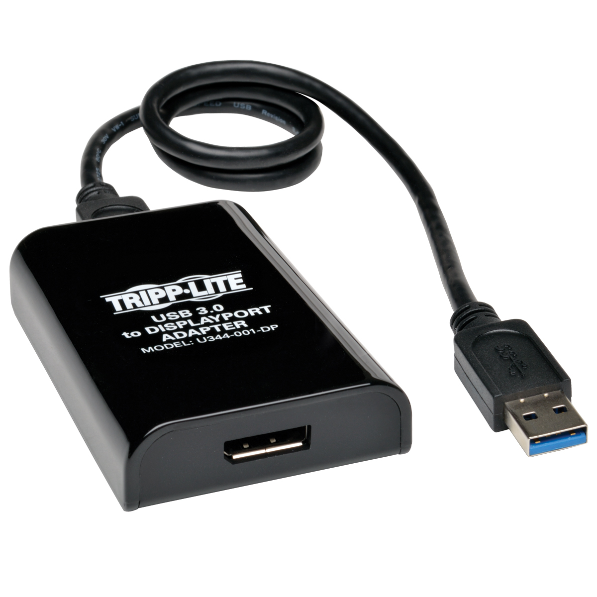 Tripp Lite U344-001-DP USB 3.0 SuperSpeed to DisplayPort Dual-Monitor Cable creates as an external DisplayPort video card via an available USB 3.0 port on your PC or Laptop. Connect up to six DisplayPort enabled monitors, with support for video resolutions up to 2560 x 1600 (1080p) and 5.1 surround sound audio.