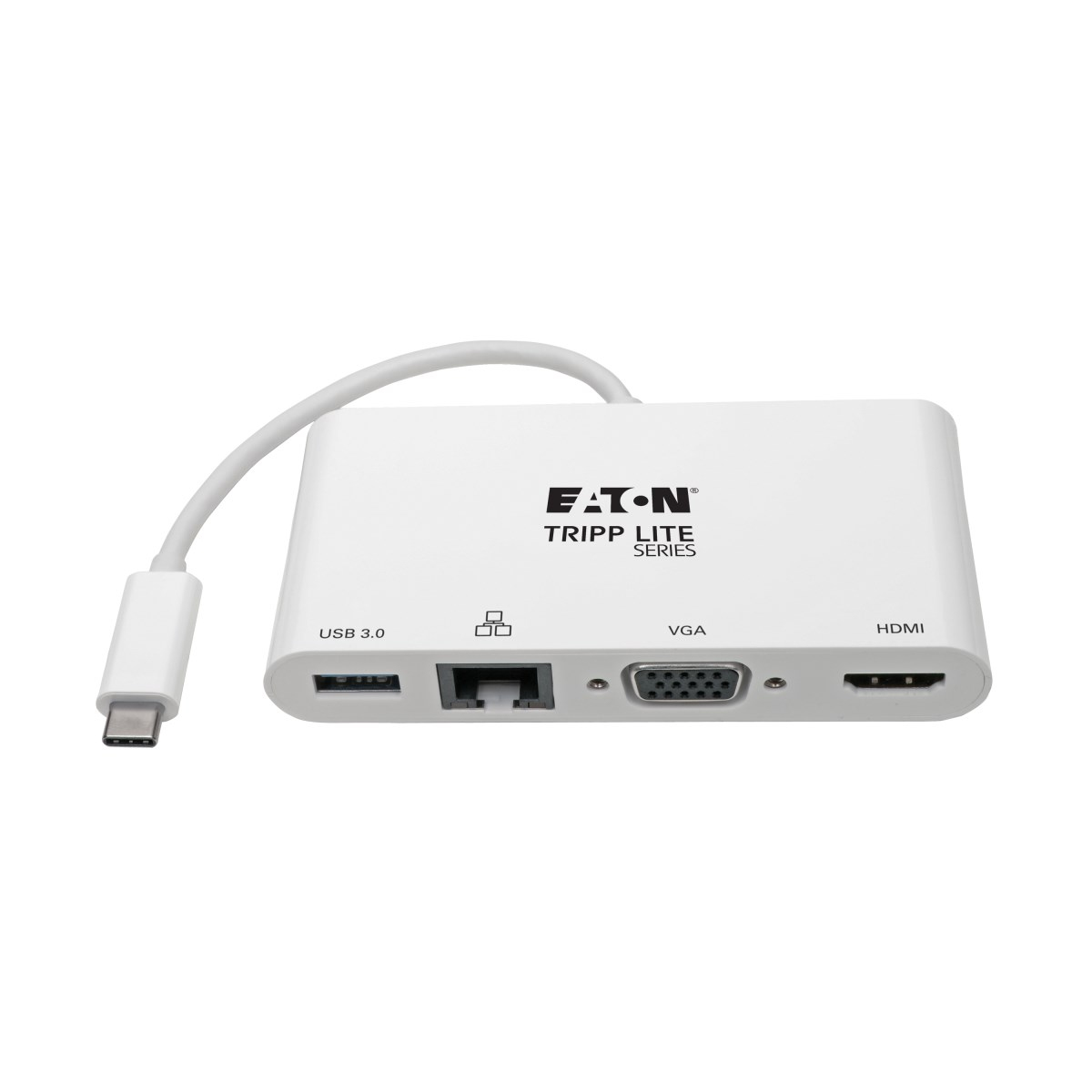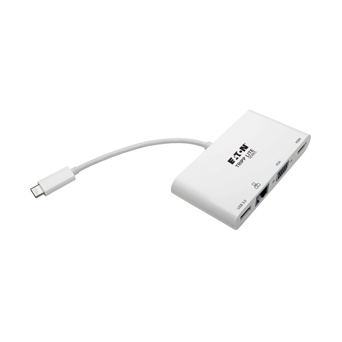 USB-C Multiport Adapter - 4K HDMI, VGA, USB 3.x (5Gbps) Hub Port, GbE, HDCP, White