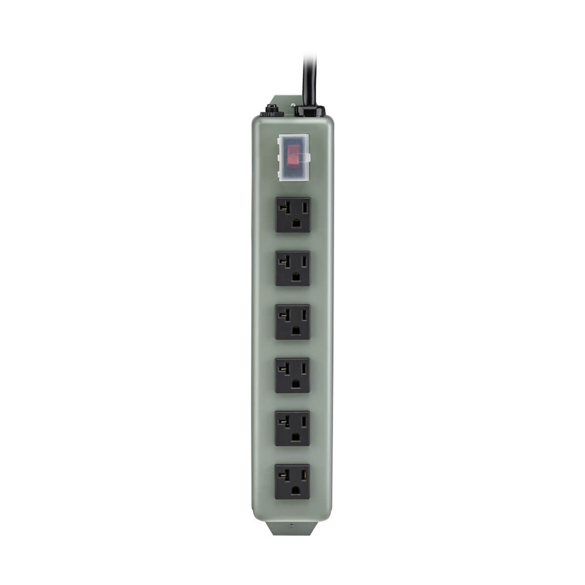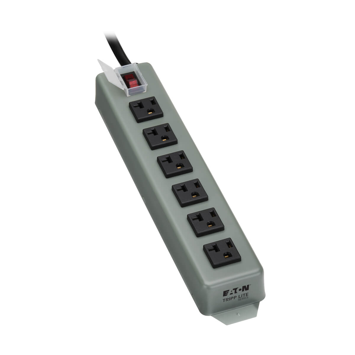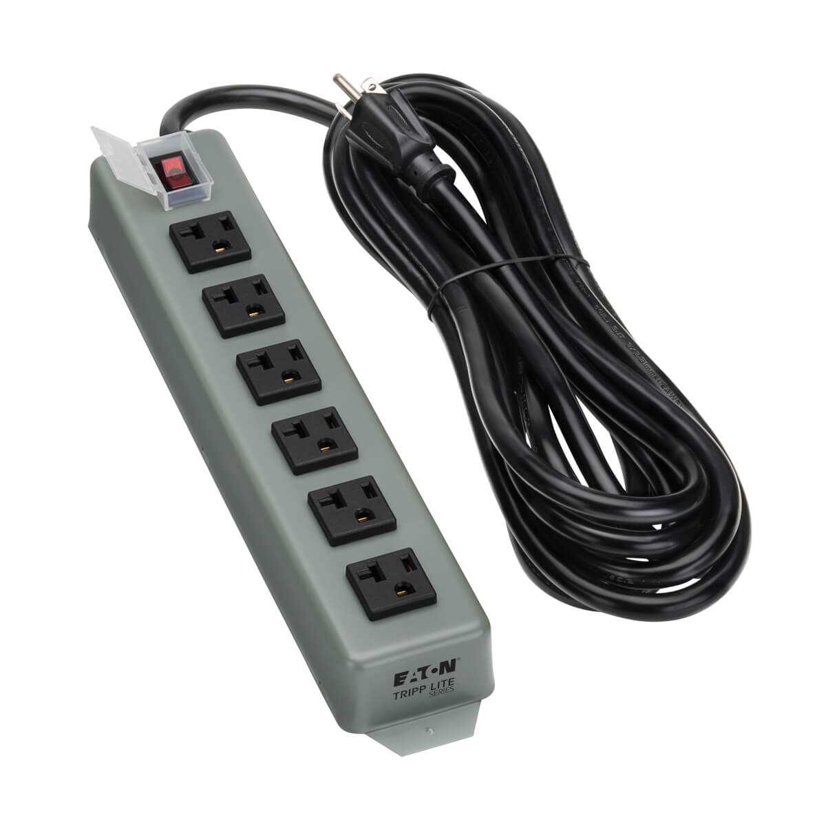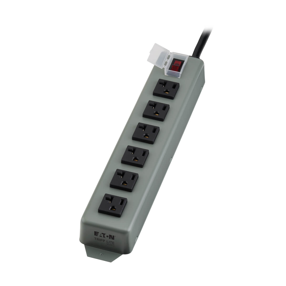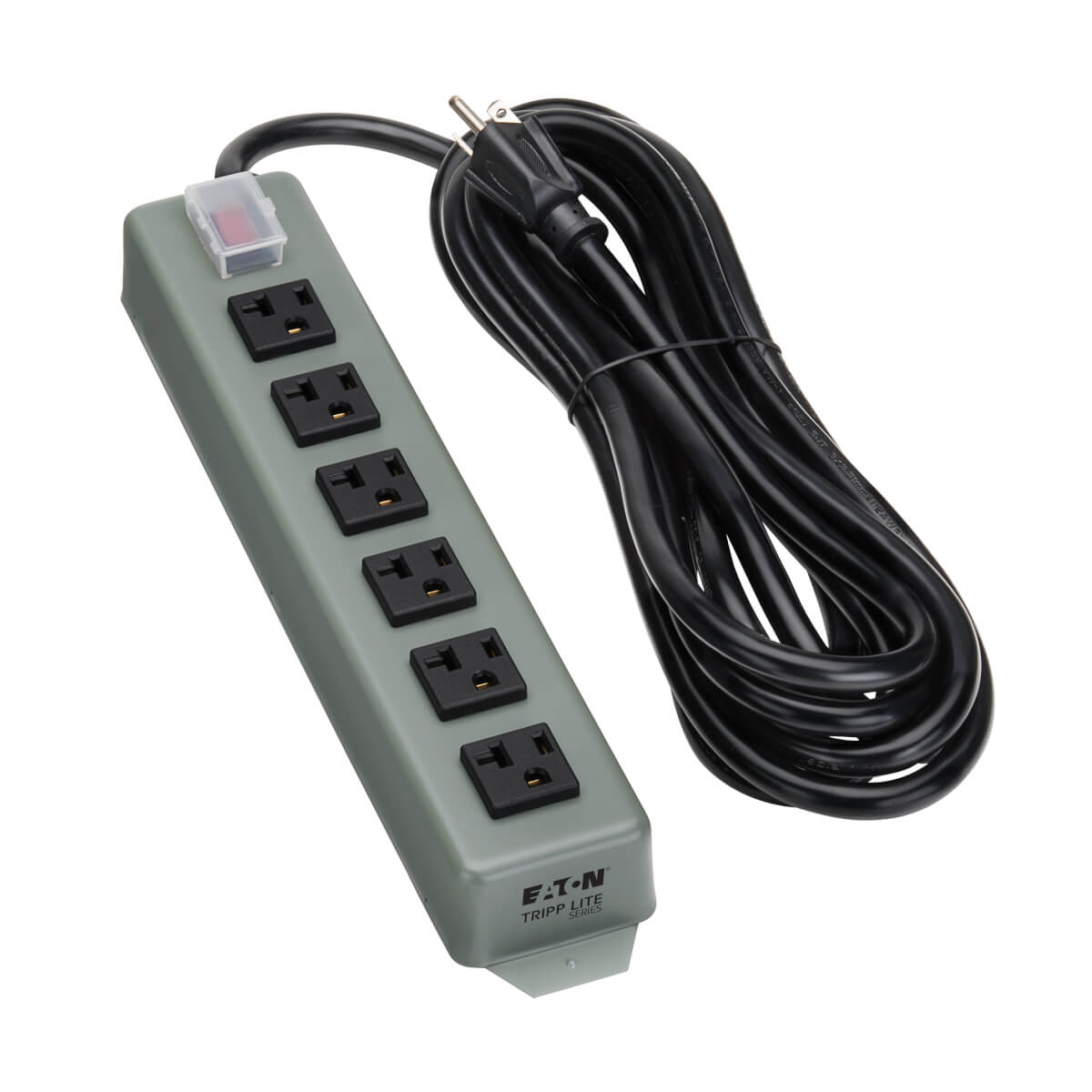 The Waber-by-Tripp Lite UL620-15 Power Strip offers a convenient method of power distribution in workbench, wallmount or floor mount applications. Includes 6 NEMA 5-15R/20R output receptacles with 1.625 inch center-to-center spacing, 15 foot AC line cord and keyhole mounting tabs for installation in a wide variety of applications. Corded, multi-outlet strip reduces cabling clutter and enables the connection of multiple electrical devices to a single AC wall socket. Unfiltered electrical pass-through makes UL620-15 ideal for distributing alternate waveform UPS or generator power. Features rugged all-metal housing, lighted power switch with transparent guard to prevent accidental shutoff, 20 amp resettable circuit breaker and attractive blue/gray color scheme.