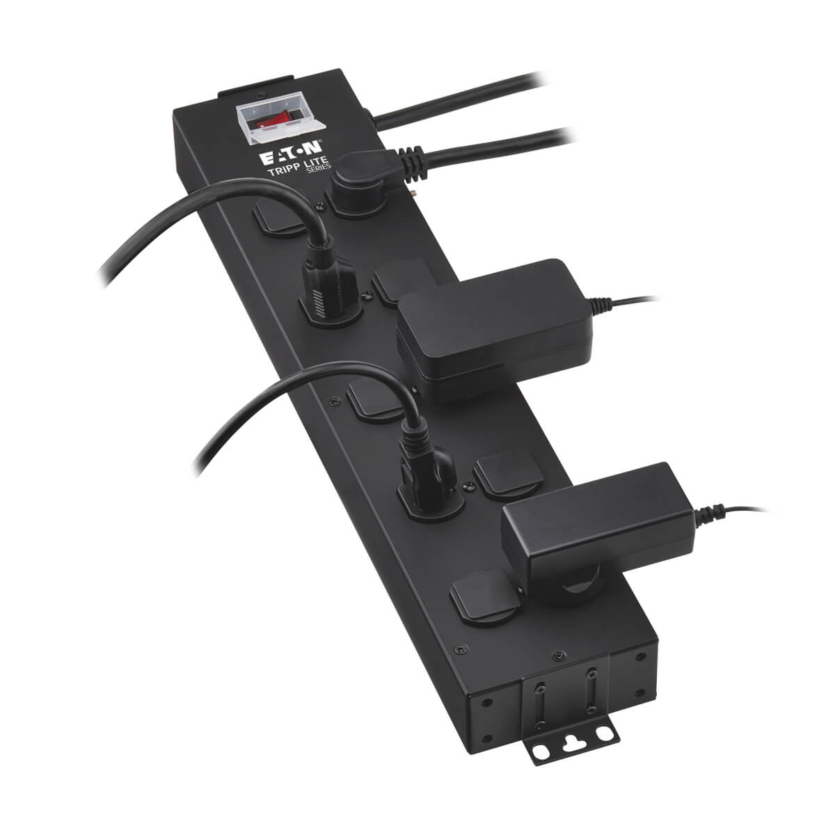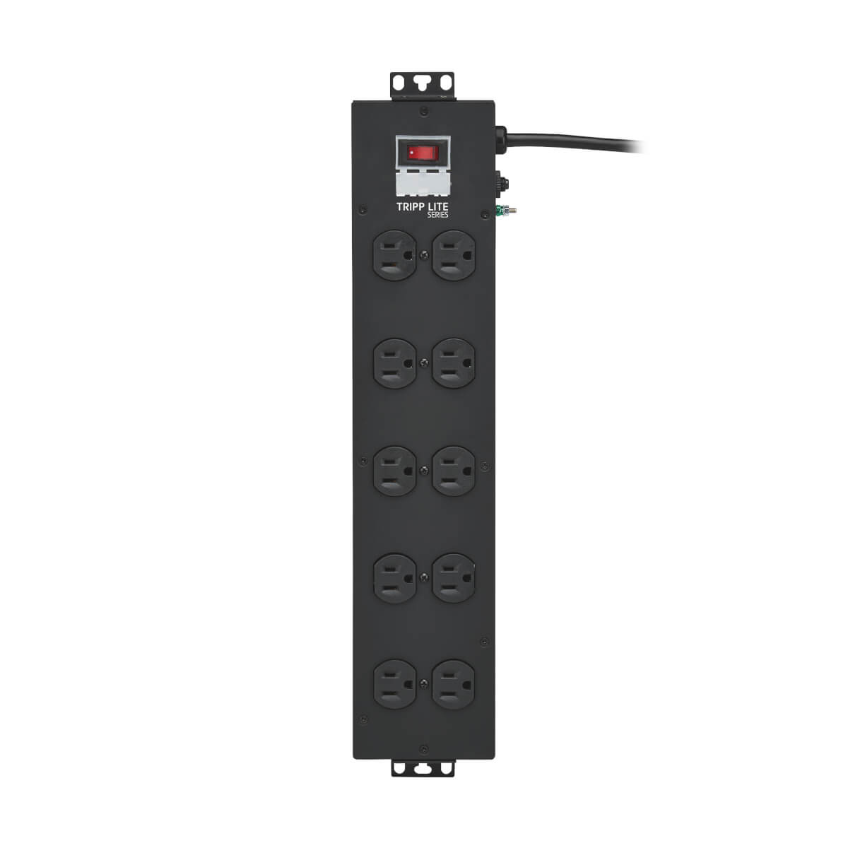 The Waber-by-Tripp Lite UL800CB-15 Power Strip offers a convenient method of power distribution in workbench, wallmount or floor mount applications. Includes 10 NEMA 5-15R output receptacles arranged with traditional wall socket spacing to accept large equipment plugs with minimal outlet blockage. Includes 15 foot AC line cord and flat sheet metal flanges for installation in a wide variety of applications. Corded, multi-outlet strip reduces cabling clutter and enables the connection of multiple electrical devices to a single AC wall socket. Unfiltered electrical pass-through makes UL800CB-15 ideal for distributing alternate waveform UPS or generator power.