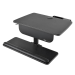 To adjust the height of the WWSSDC, press the lever to raise or lower the pneumatic spring arm. The monitor platform and keyboard tray move together to provide smooth transitions between sitting and standing. Increase tension for heavier loads or decrease it for lighter items. The workstation remains stable at all heights. Maximum weight capacity is 29 pounds.
