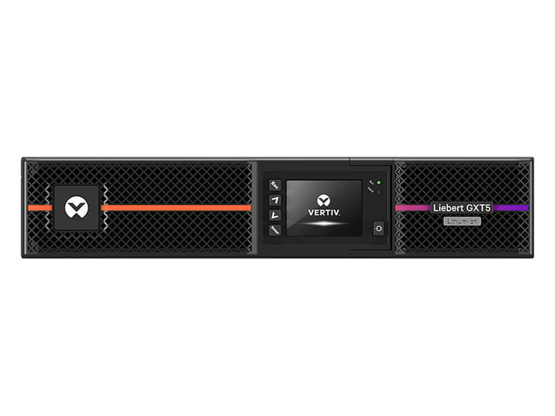 Vertiv Liebert GXT5LI-2000LVRT2UXL. UPS topology: Double-conversion (Online), Output power capacity: 2 kVA, Output power: 1800 W. AC outlet types: NEMA 5–15, NEMA 5–20R, NEMA L5-20R, Power plug: NEMA 5-20P, AC outlets quantity: 7 AC outlet(s). Battery technology: Lithium-Ion (Li-Ion), Typical backup time at full load: 10.5 min, Typical backup time at half load: 22.5 min. Form factor: Rackmount, Product color: Black, Rack capacity: 2U. Compliance certificates: REACH, RoHS, WEEE
